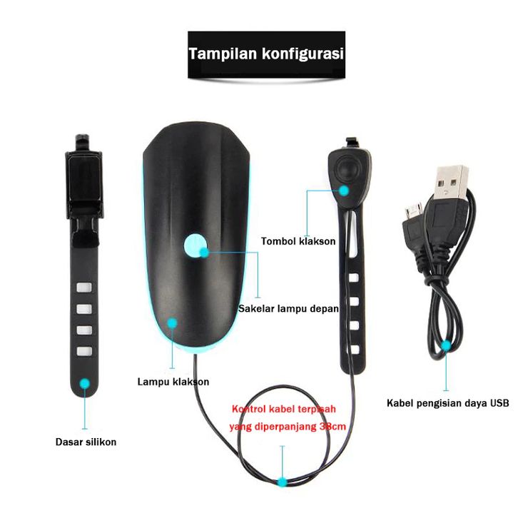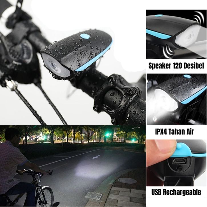 Lampu Bersepeda Malam Hari Anti Air Bel Klakson Lampu Sepeda USB Isi Ulang Speaker 12 DB Bike LED