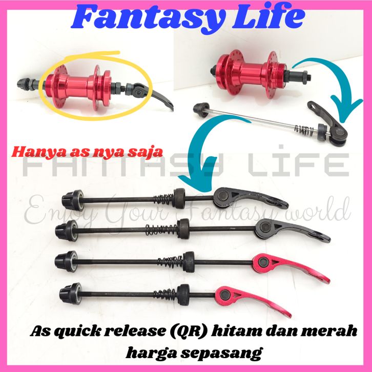Fantasy As Quick Release as QR set depan belakang warna merah dan hitam sepeda MTB federal lipat