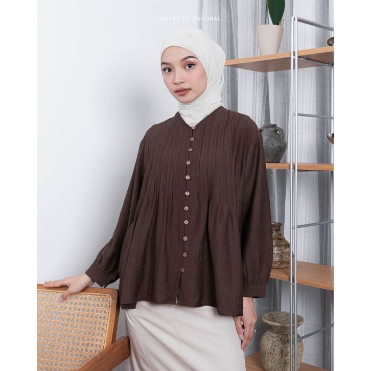 Orimoza Selena Blouse Rempel Wanita bahan Polo Linen