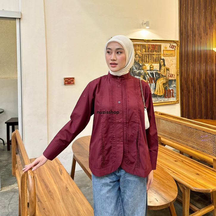 NUZI - Haejoo Oversized Shirt Blouse Katun Korean Style