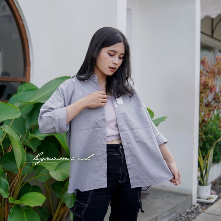 Kemeja Wanita Linen Oversize Olivia Shirt Linen Pocket Premium Tebal