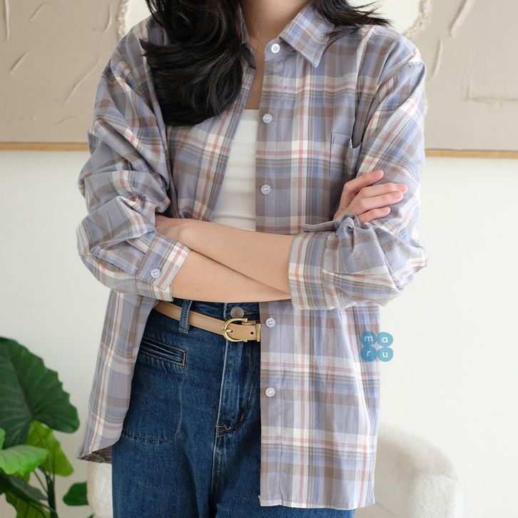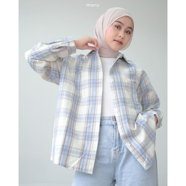 SAMSAN Flannel Shirt | MARU Dailywear | Kemeja Flanel Wanita Kotak Kotak Lengan Panjang Hijab Atasan
