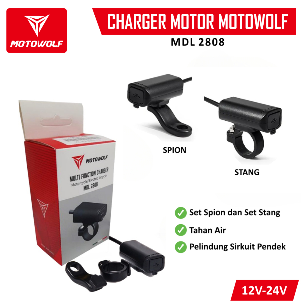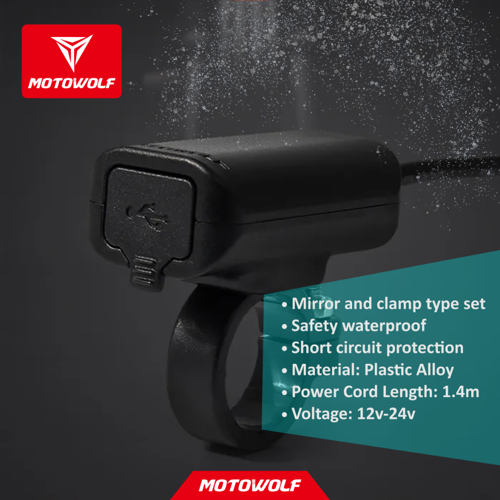 Motowolf USB Charger Motor Universal Stang Spion Motor Waterproof