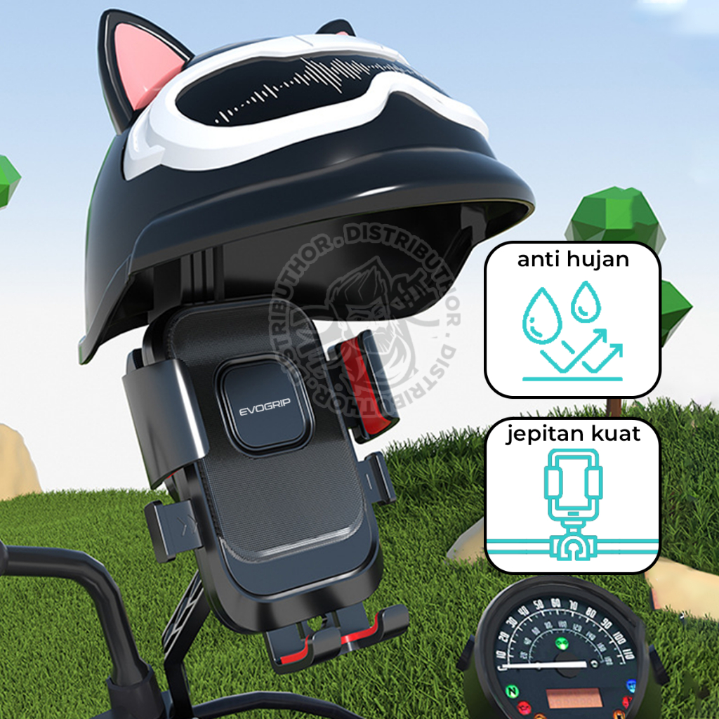 Holder Hp Motor + Topi Helm Lucu EVOGRIP GEN 2 EG71 Phone Holder Karakter Spion Besi Model Helm Dudukan Tempat Hape Pelindung Hujan Panas silau di sepion - DISTRIBUTHOR