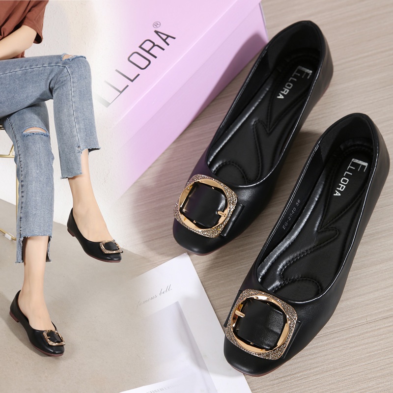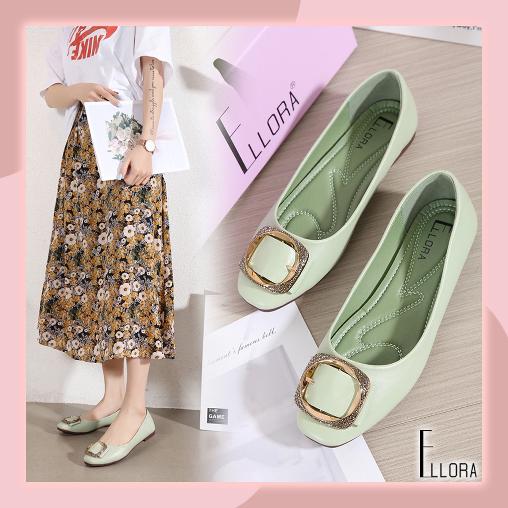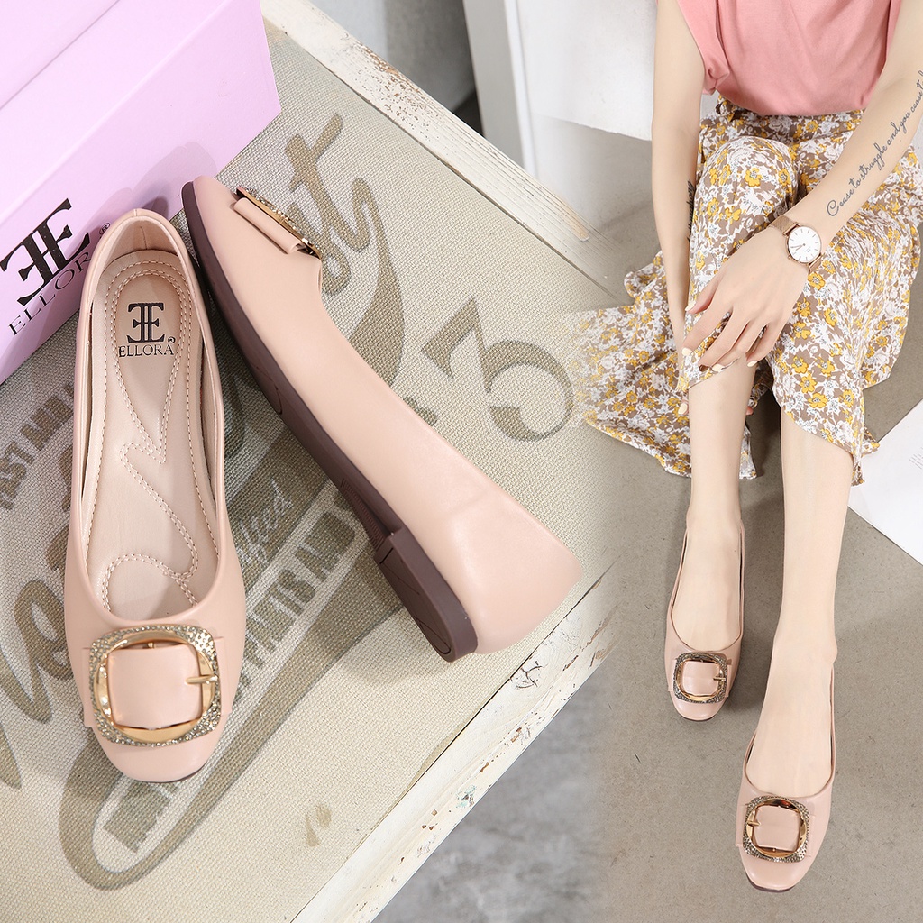 ELLORA EG-2040 Sepatu Wanita Kerja Flatshoes Ballerina Bahan Dove Sintetis Import