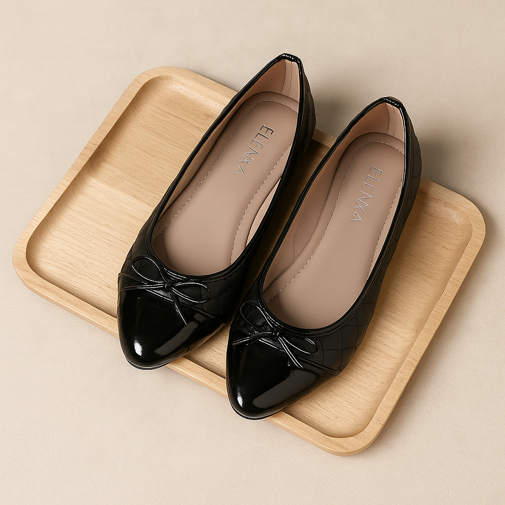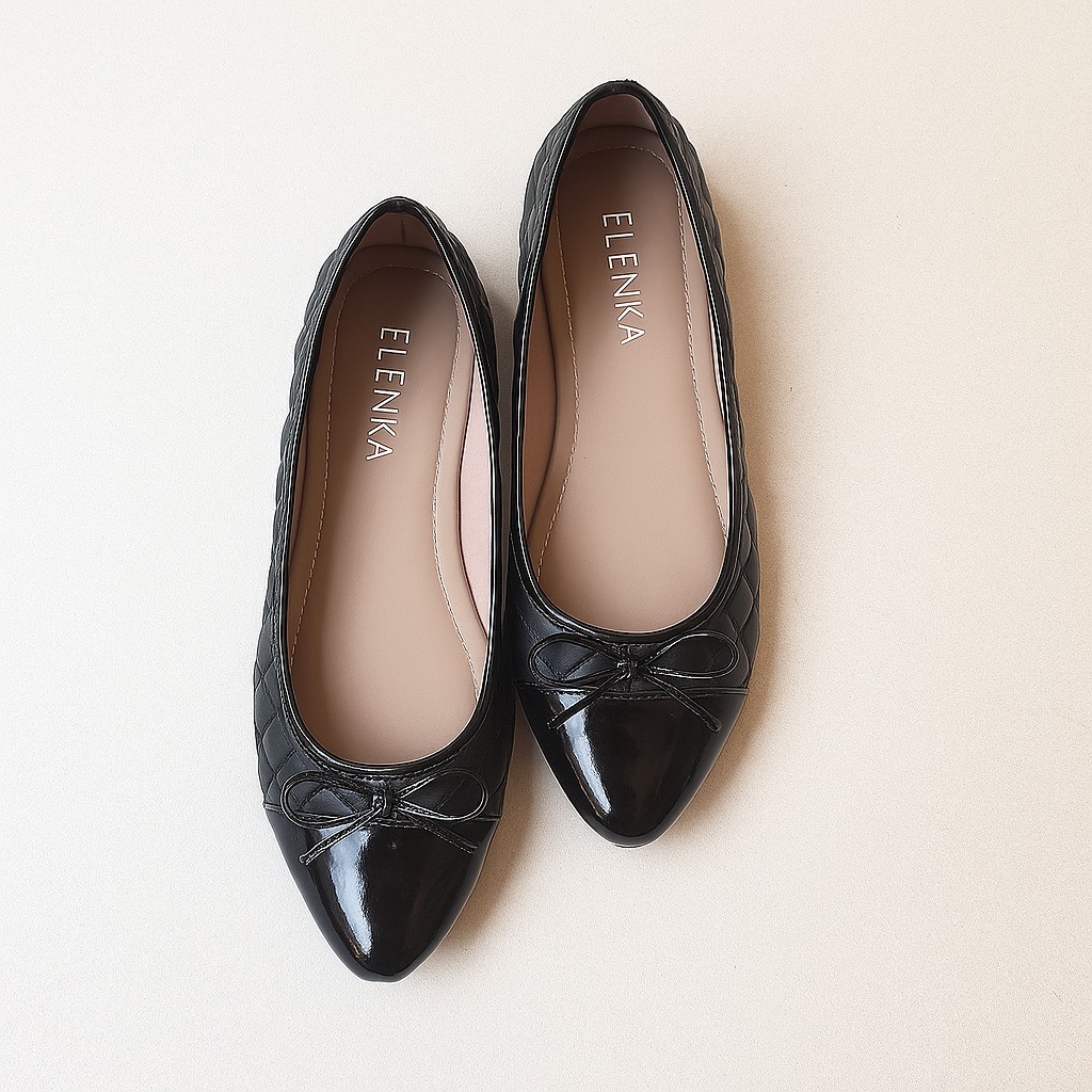 Flatshoes Jumbo Wanita Davina Black Elenka Bigsize 41 42 43 44 45 Sepatu Kerja Hitam Korean Style
