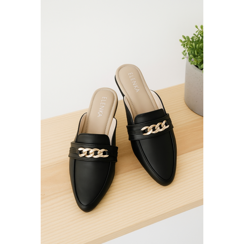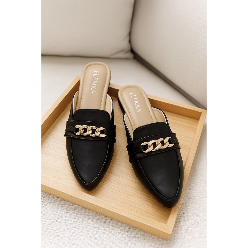 Flat Shoes Jumbo Wanita Zoyah Black Elenka Big Size 41 42 43 44 45 Sepatu Mules Kaki Lebar