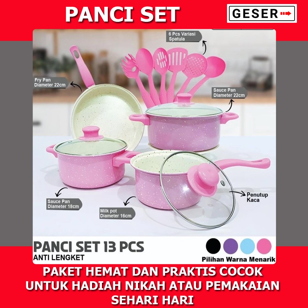 Panci Teflon Marble - 13pcs Cookware Set Tutup Kaca | Cookware Panci Set Wajan Penggorengan Spatula