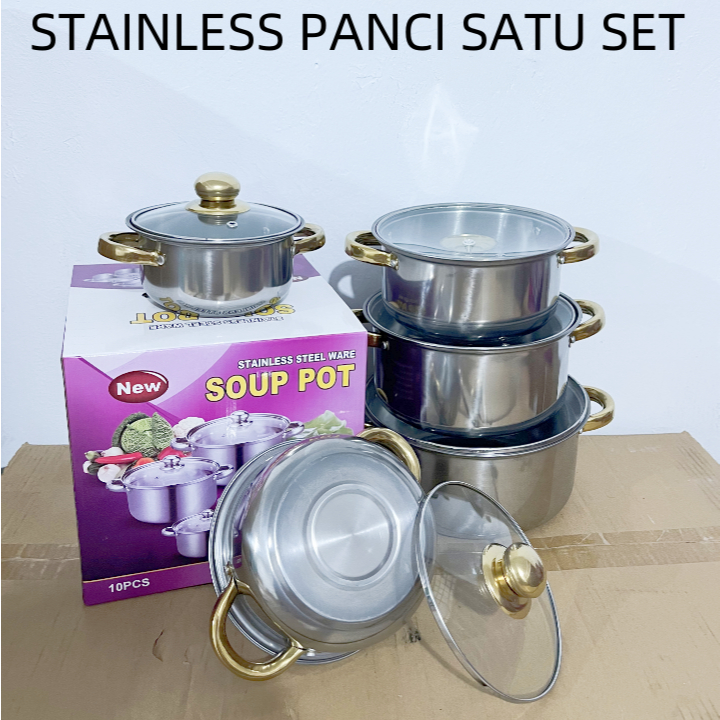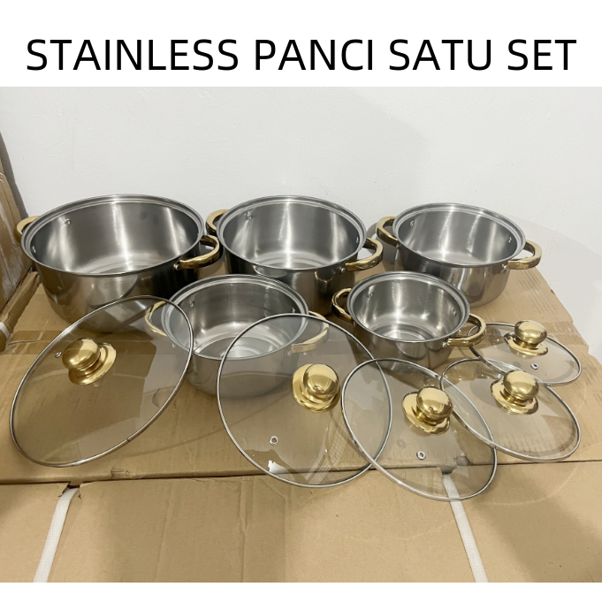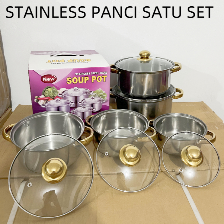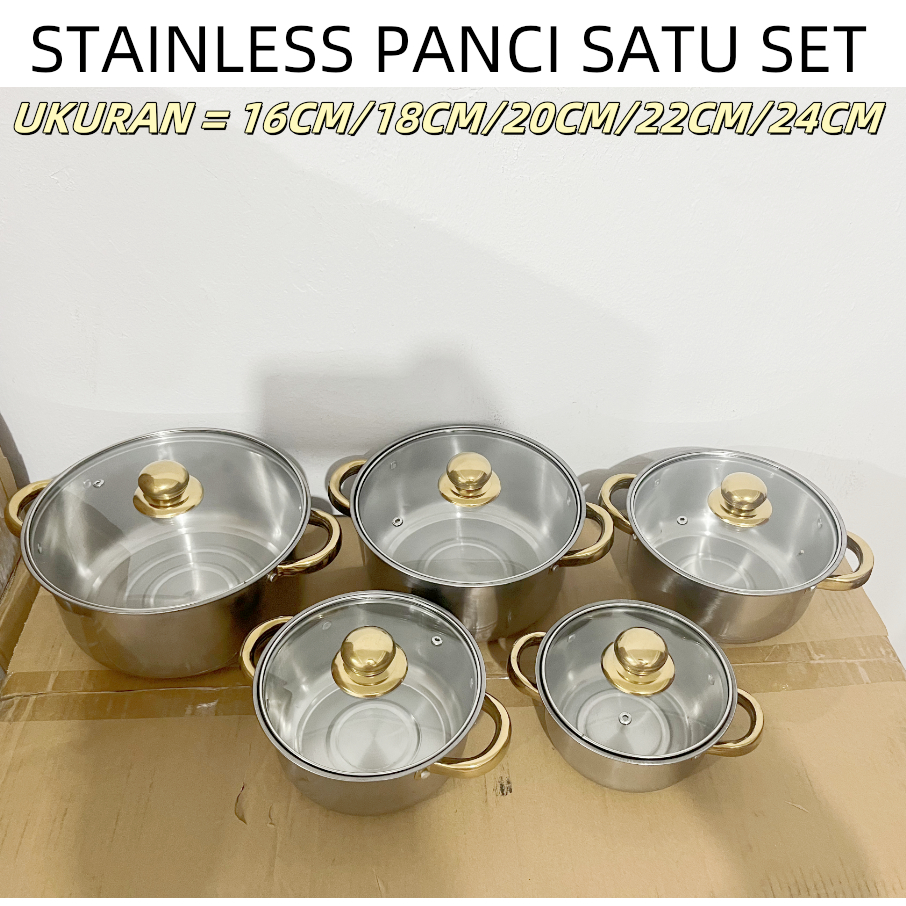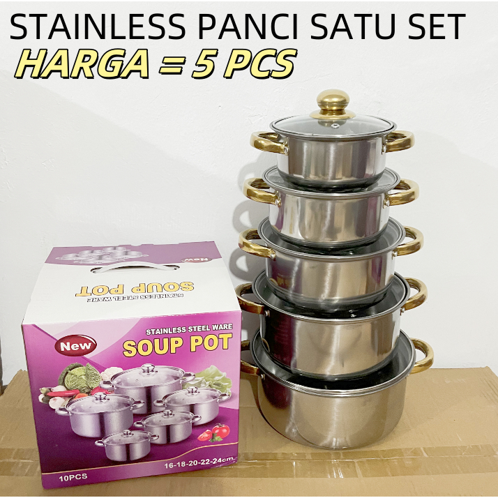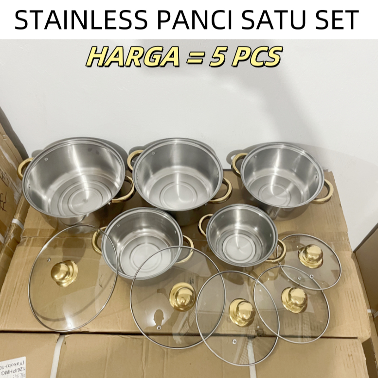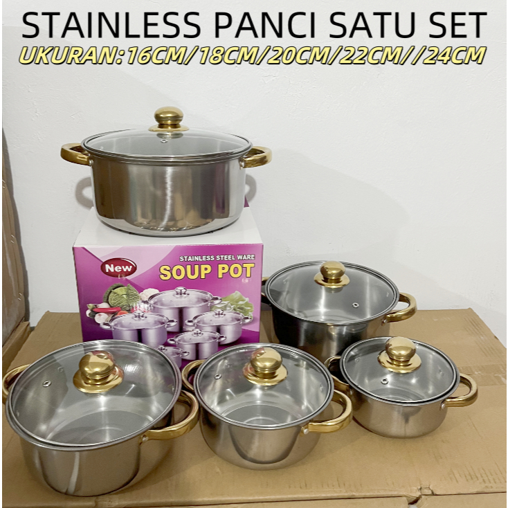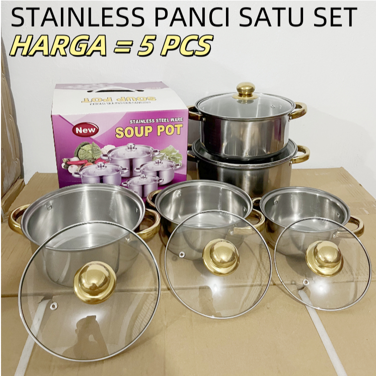 CUCI GUDANGGG Panci 1 set isi 5 merk DNN SUP POT Stainless steel PANCI kukusan tutup glass