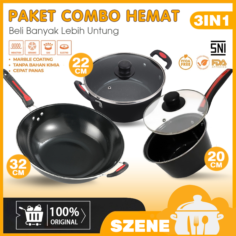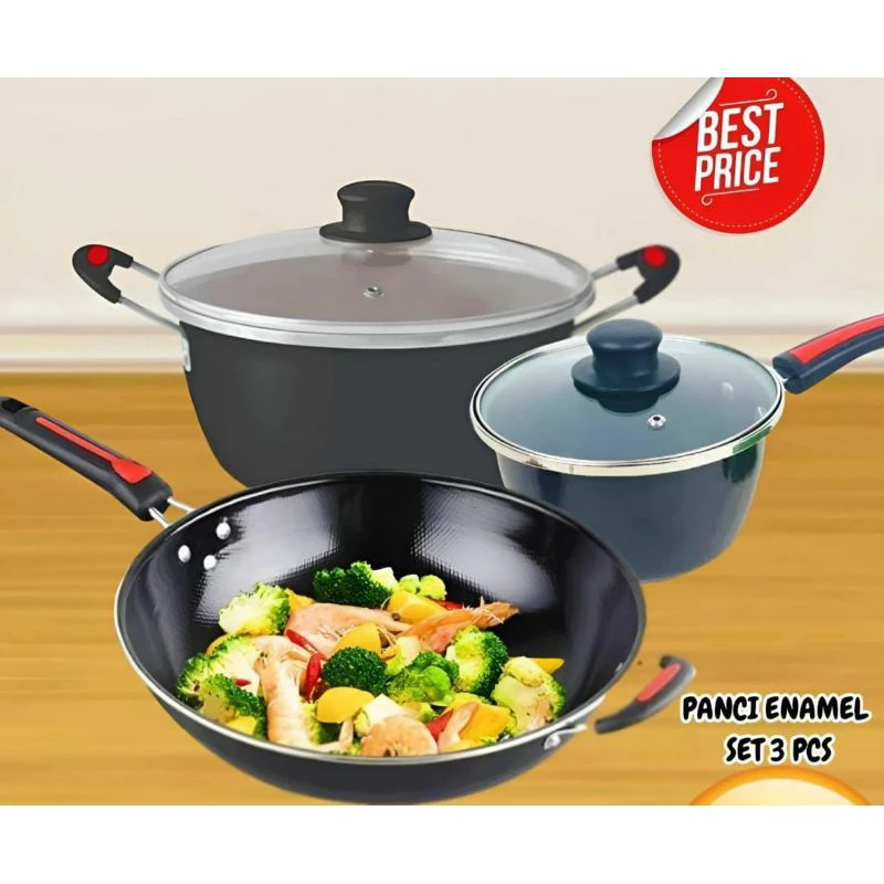Panci Enamel Set 3 Anti Lengket Multiguna panci penggorengan 32cm panci susu 20CM panci sup 22CM