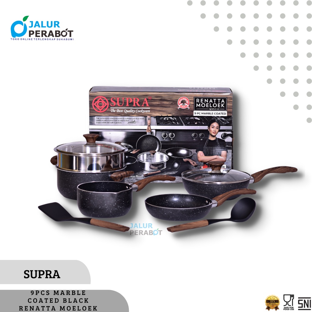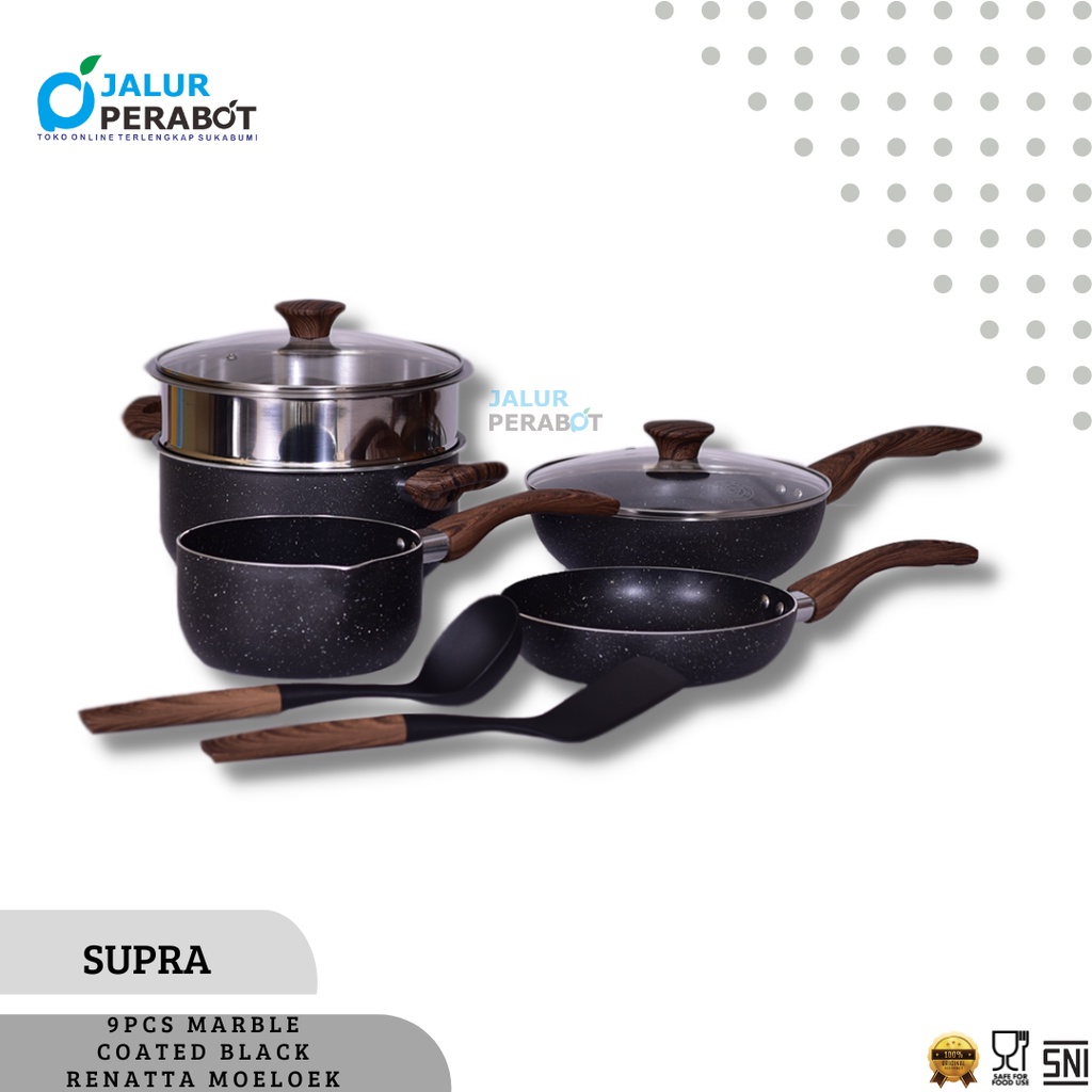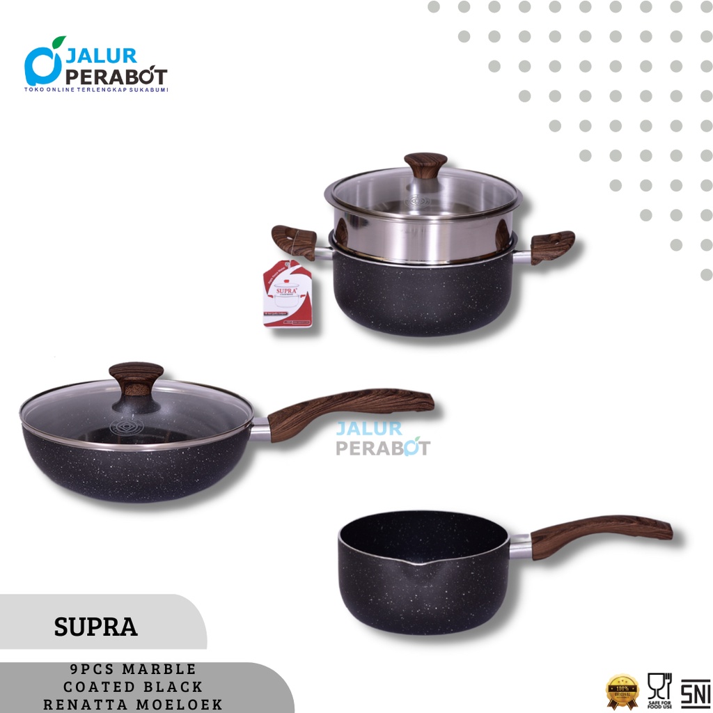 Panci set SUPRA Alumunium anti lengket Renatta Moeloek Signature Set 9 Pcs Marble Coated (Wooden)
