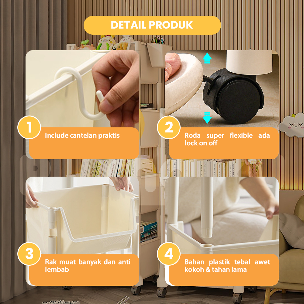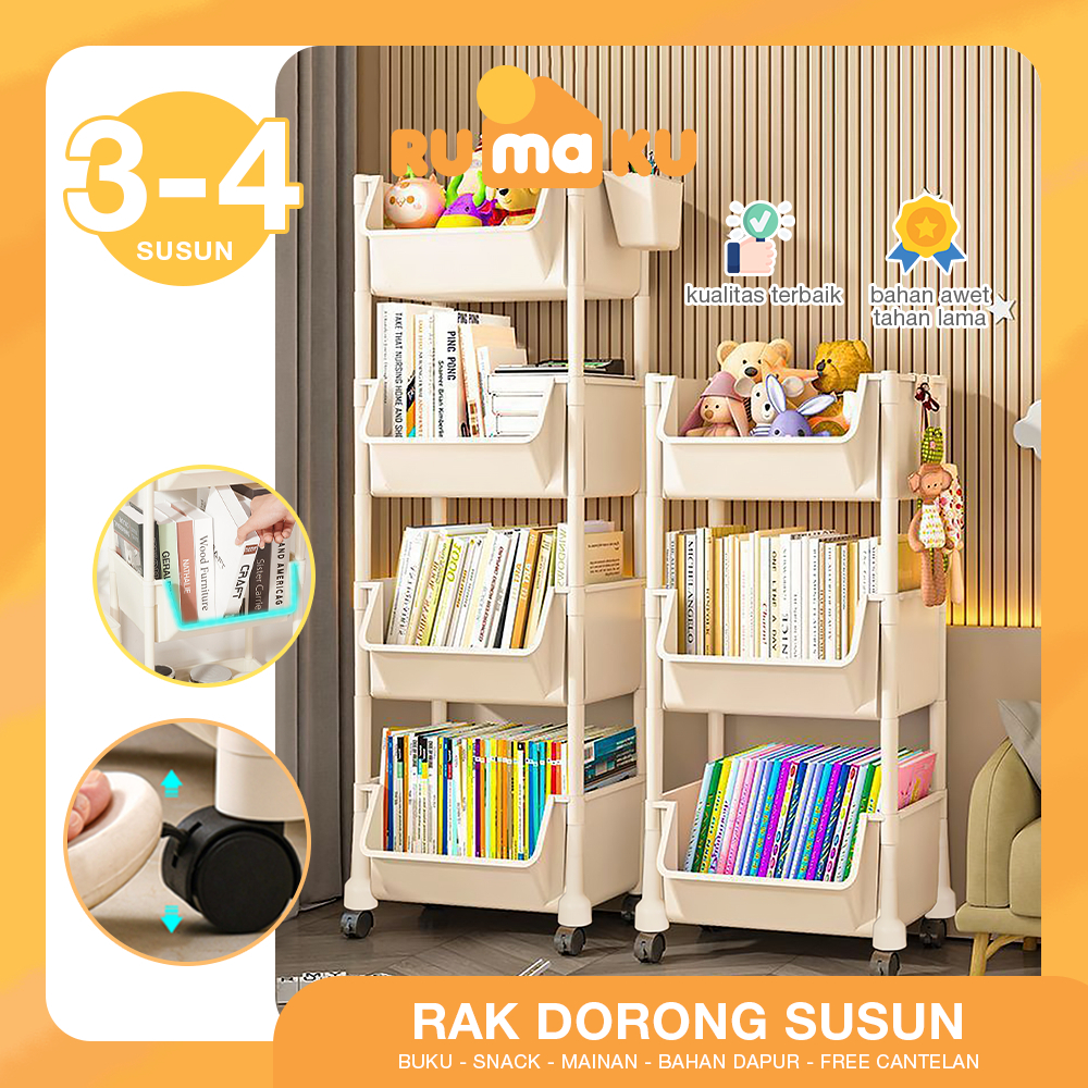 Rumaku Rak Troli Roda Dorong Dengan Gantungan Serbaguna Varian 3 Susun 4 Susun dan 5 Susun Tingkat
