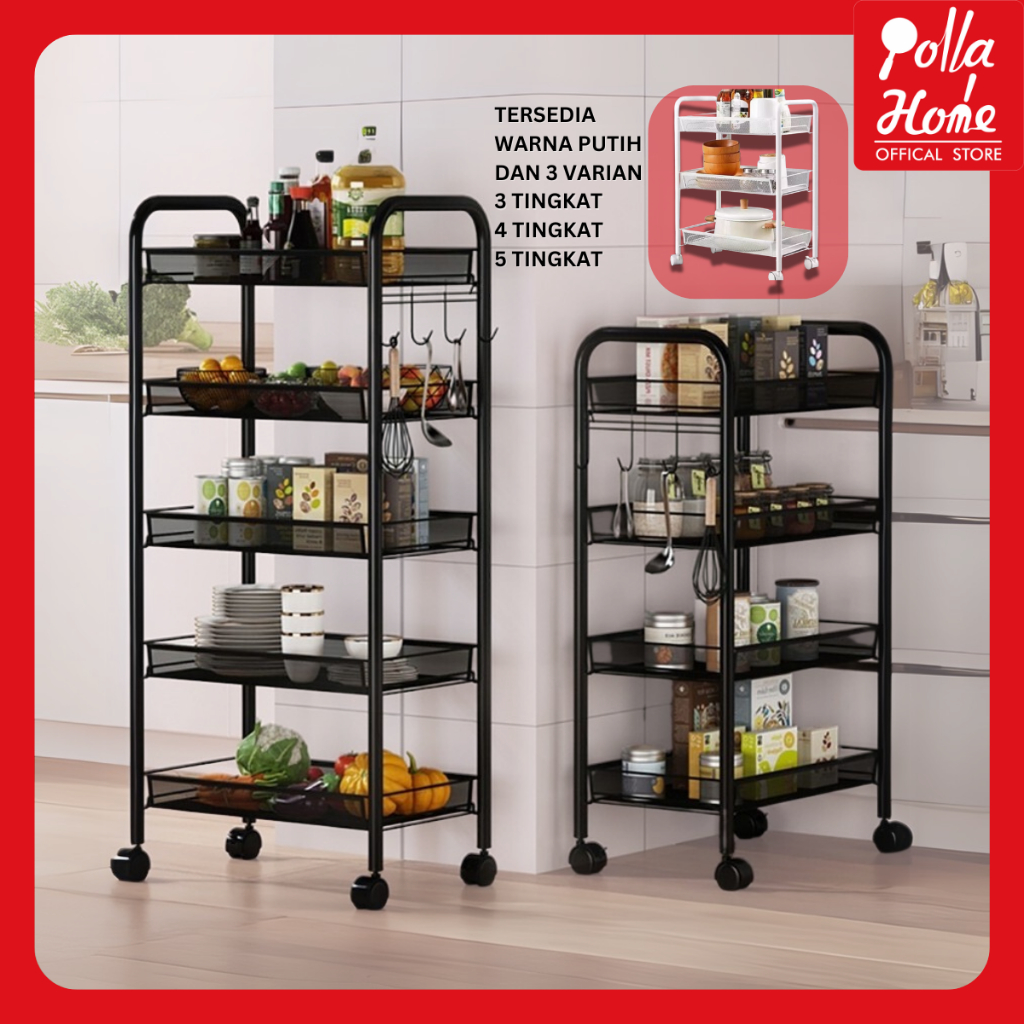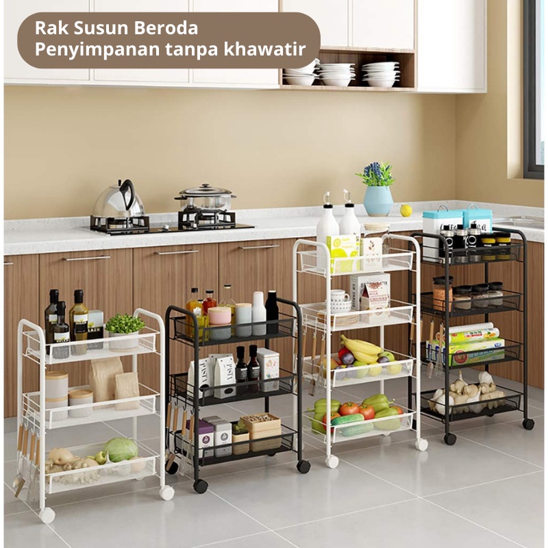 Olla Hom - Rak Lantai Beroda Rak Penyimpanan Serbaguna Rak Ruang Tamu