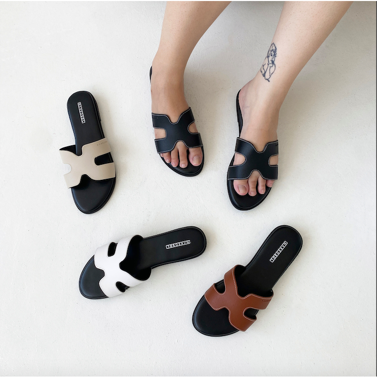 Nakedsol Eden Slides (Black, Oat, Tan, White) Sandal Slip Wanita | Sandal Slippers | Sandal Slip on | Casual Sandals