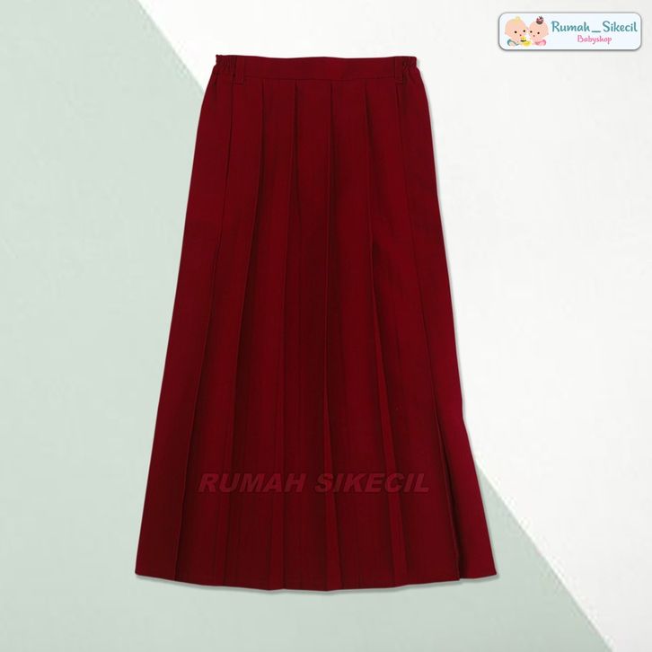 SERAGAM SEKOLAH ROK PANJANG SD MI MODEL LIPIT REMPEL WARNA MERAH PUTIH HIJAU HITAM COKLAT PINGGANG KARET