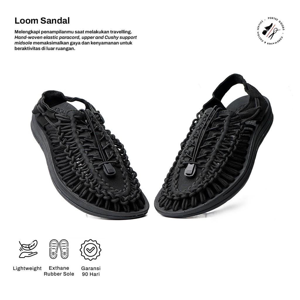 Sandal Wanita Portee Loom Sandal Black Sandal Outdoor Sandal Gunung Sandal Traveling