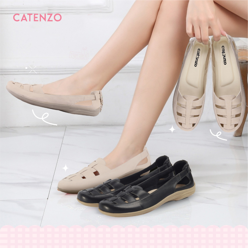 Catenzo - KS 810 Sepatu Wanita Flat Casual Original Kulit Sintetis Cream Sapatu Terlaris Shoes Woman Flatshoes Ori Warna Krem