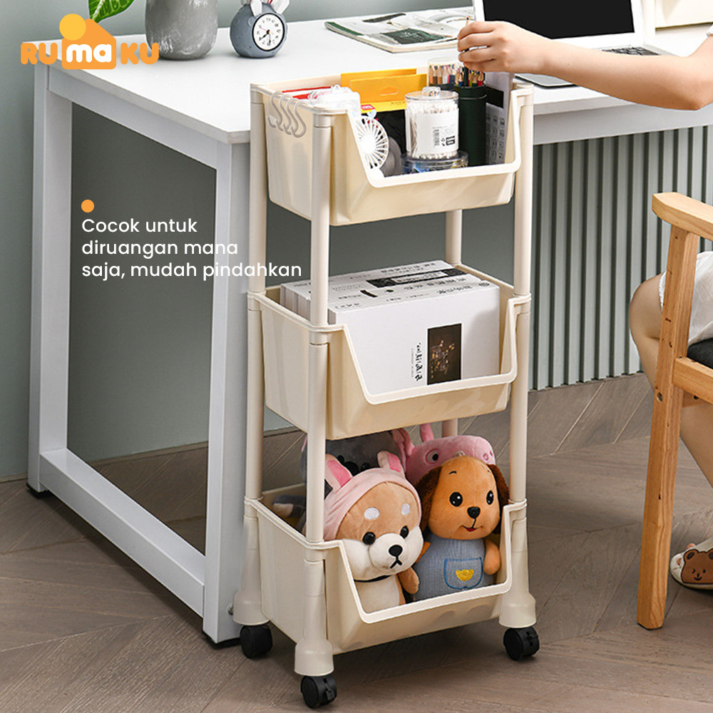 Rumaku Rak Dapur Serbaguna Rak Troli Rak Kamar Mandi Rak Susun Plastik dengan Roda