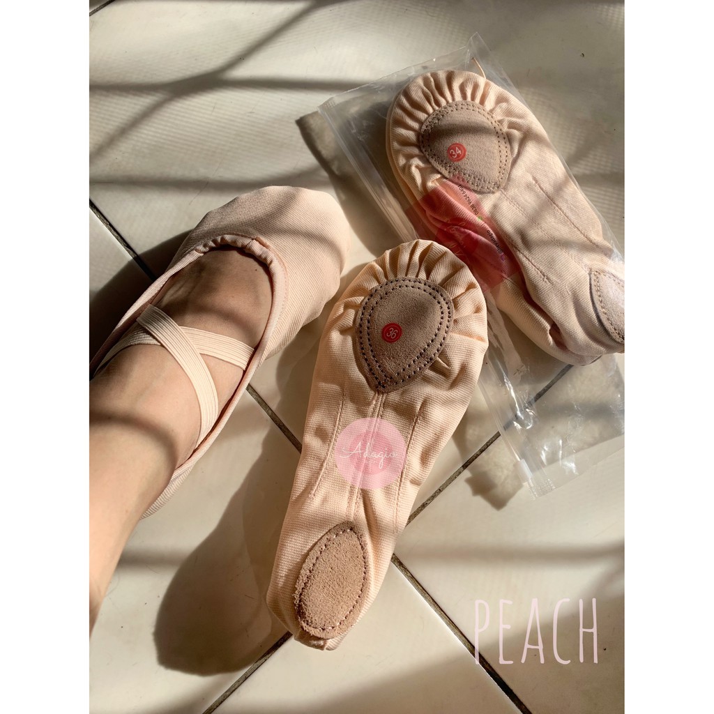 READY FREE POUCH - ADAGIO - Sepatu Balet Tari Tamborin Balerina Anak Perempuan Soft Shoes Kanvas Pink Nude Ukuran 22 - 45