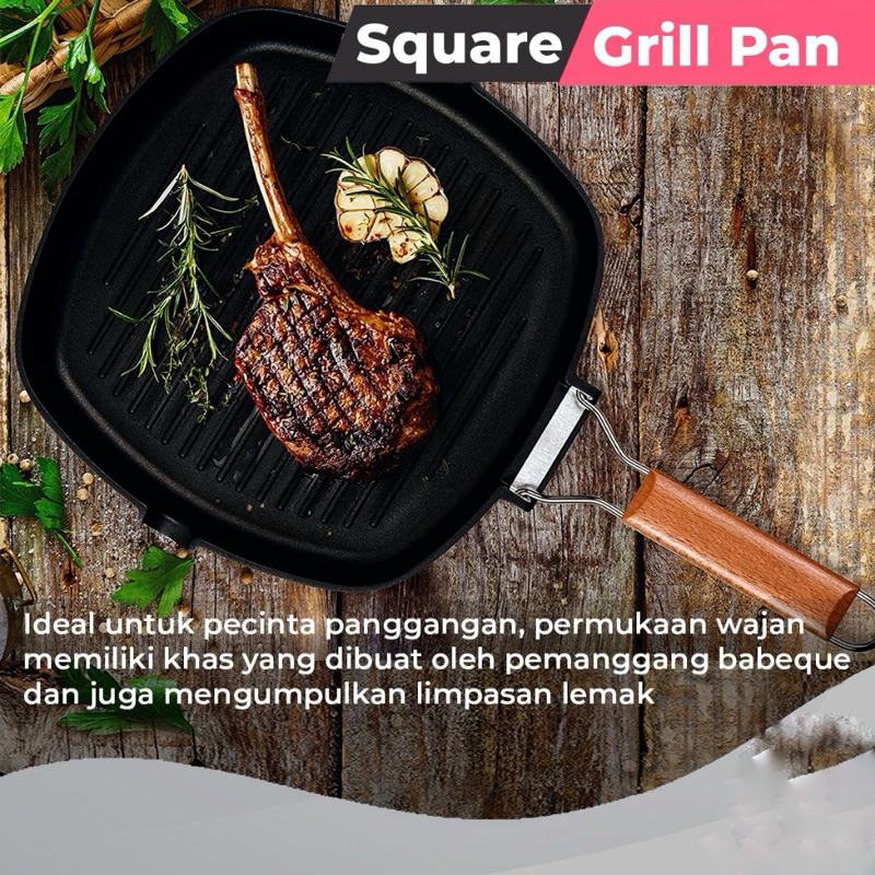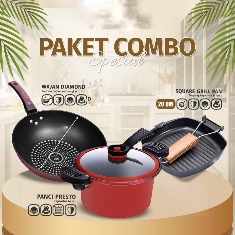 BUNDLING 3in1 Wajan Penggorengan Diamond 32cm Dengan Pegangan + Panci Presto 3.5L + Square Grill Pan Panci BBQ