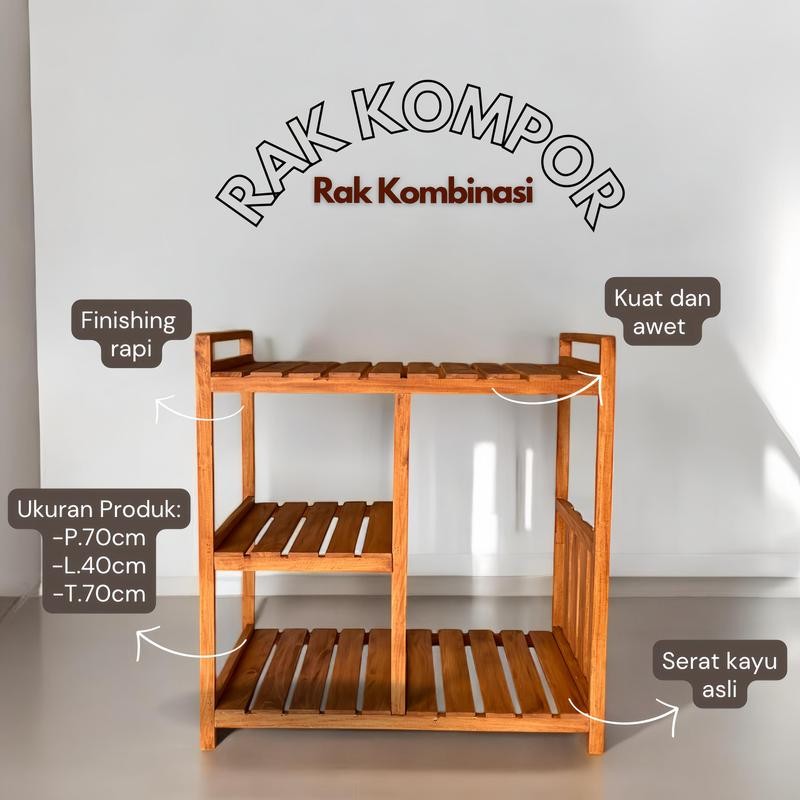 RAK KOMPOR 2 TUNGKU / RAK KOMBINASI / RAK AESTETIK Kayu Penyimpanan