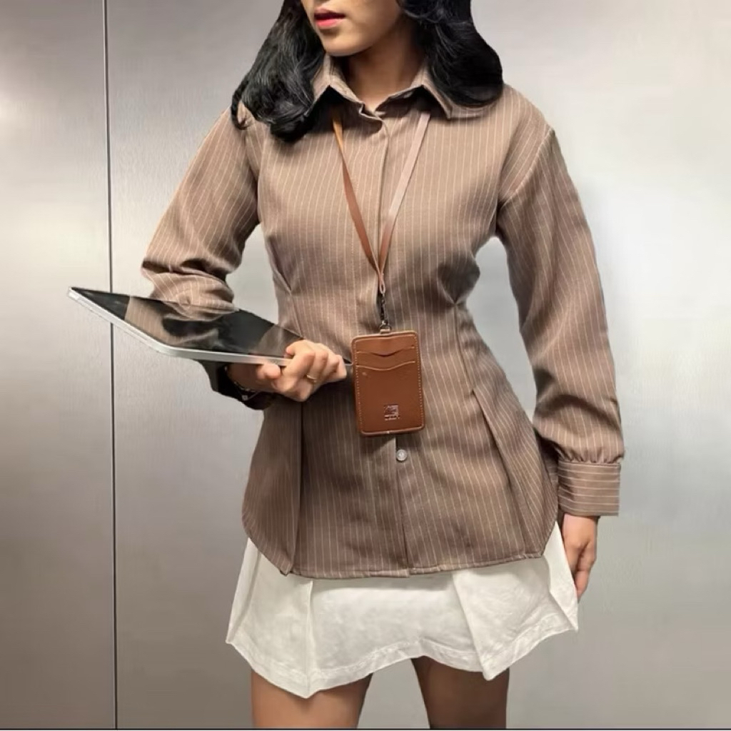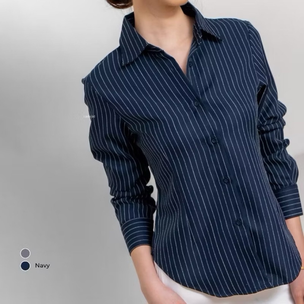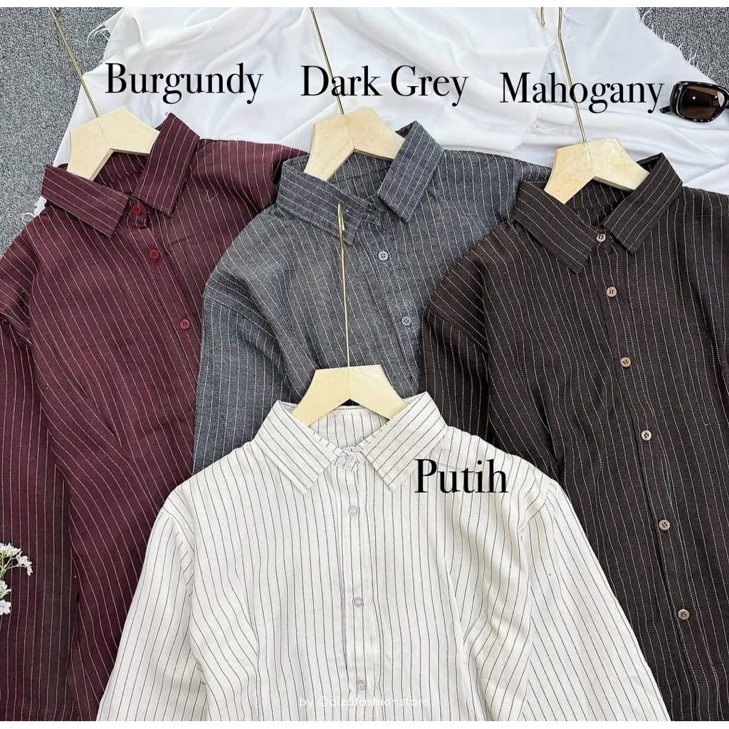 LUNA STRIPE KEMEJA FITTED SHIRT - KEMEJA WANITA FITTED STRIPE SALUR BASIC - KEMEJA KANTOR LENGAN PANJANG