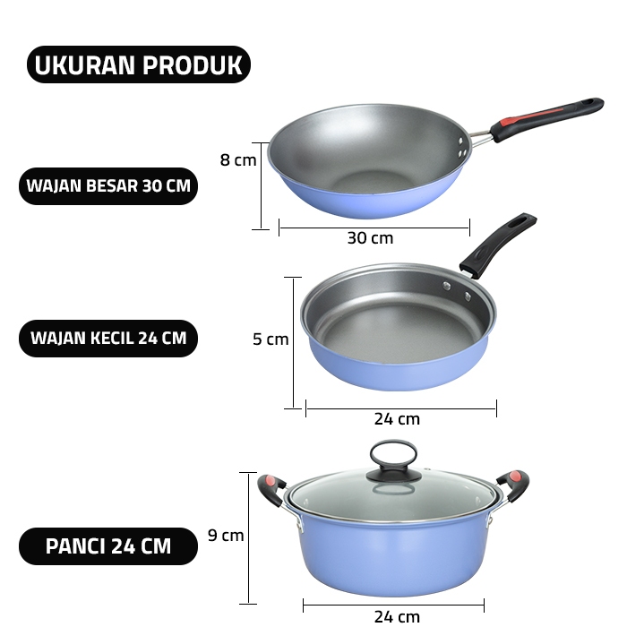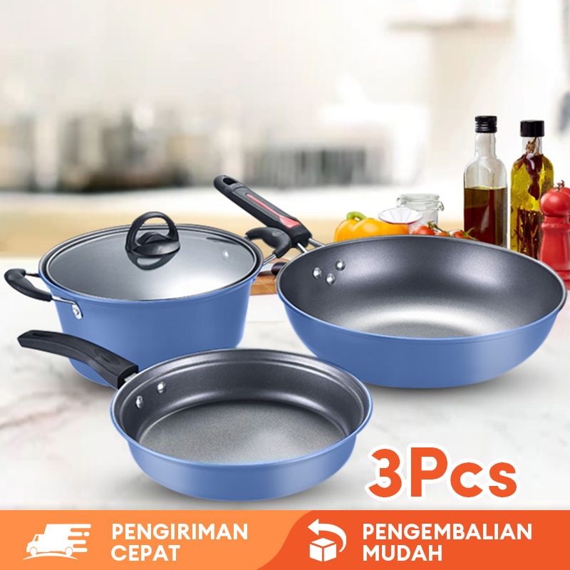 Panci Set Lengkap Wajan Set 3 psc 1560 - Arria Panci Wajan Penggorengan Set Alat Masak Panci 1 Set