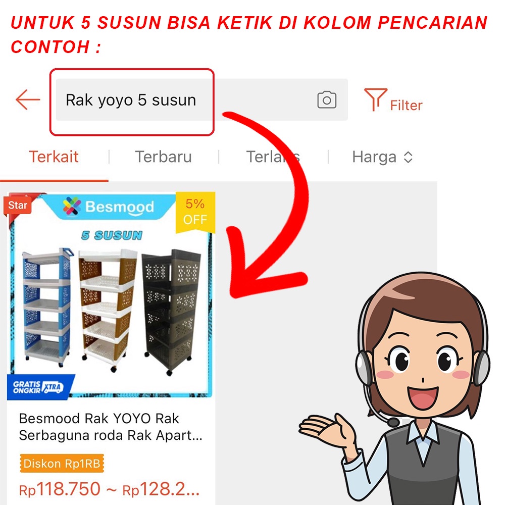Besmood Rak Apartemen roda Serbaguna 3 Susun dan 4 Susun Yoyo