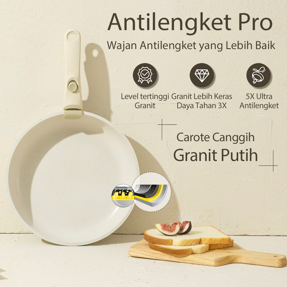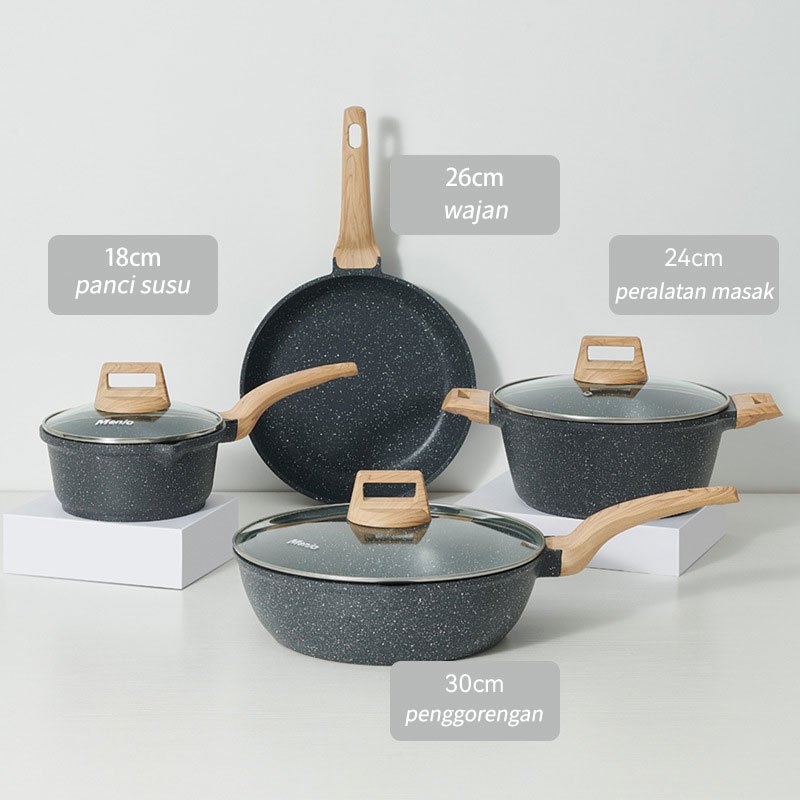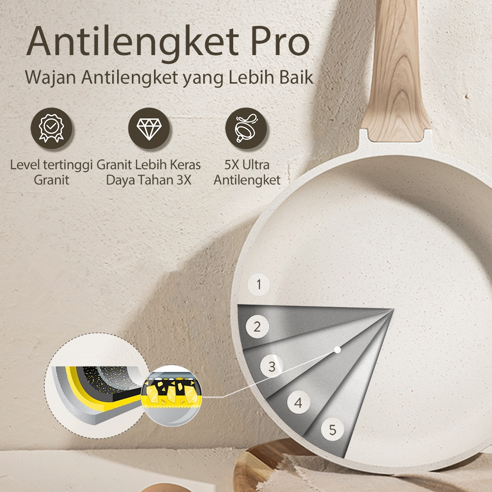 Granit Putih Antilengket Peralatan Masak Dapur Wajan Rumah Tangga Premium Set 4 Pcs Wajan Panci Jumbo Anti Lengket