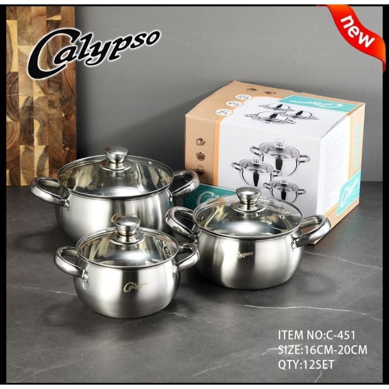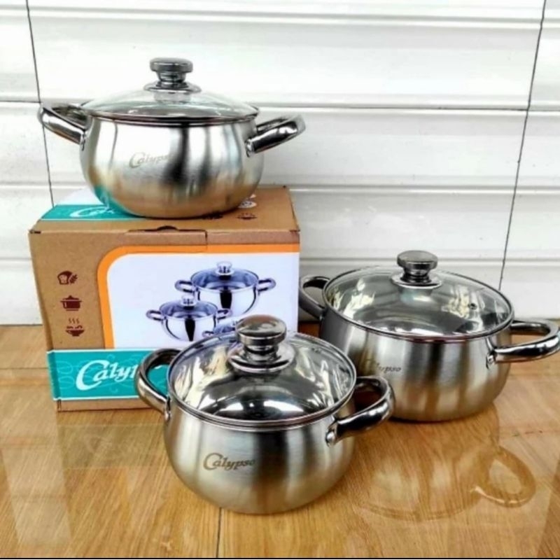 CALYPSO Panci soup Set Isi 3 pcs Tutup Kaca Tebal