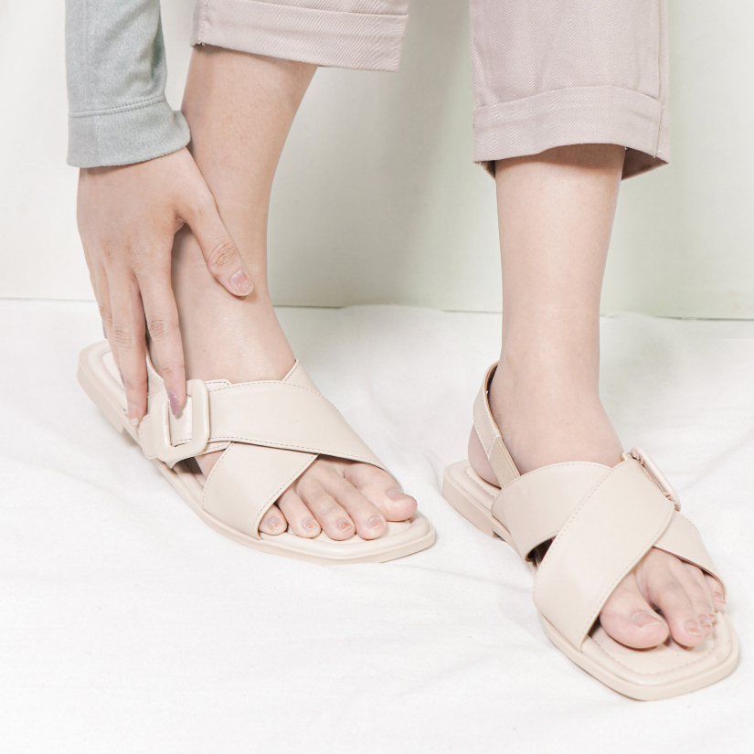 AYANA Sepatu Sandal Wanita Teplek Size 36 - 40 Model Baru Silang dua Tali Strap Belakang Warna Hitam Cream