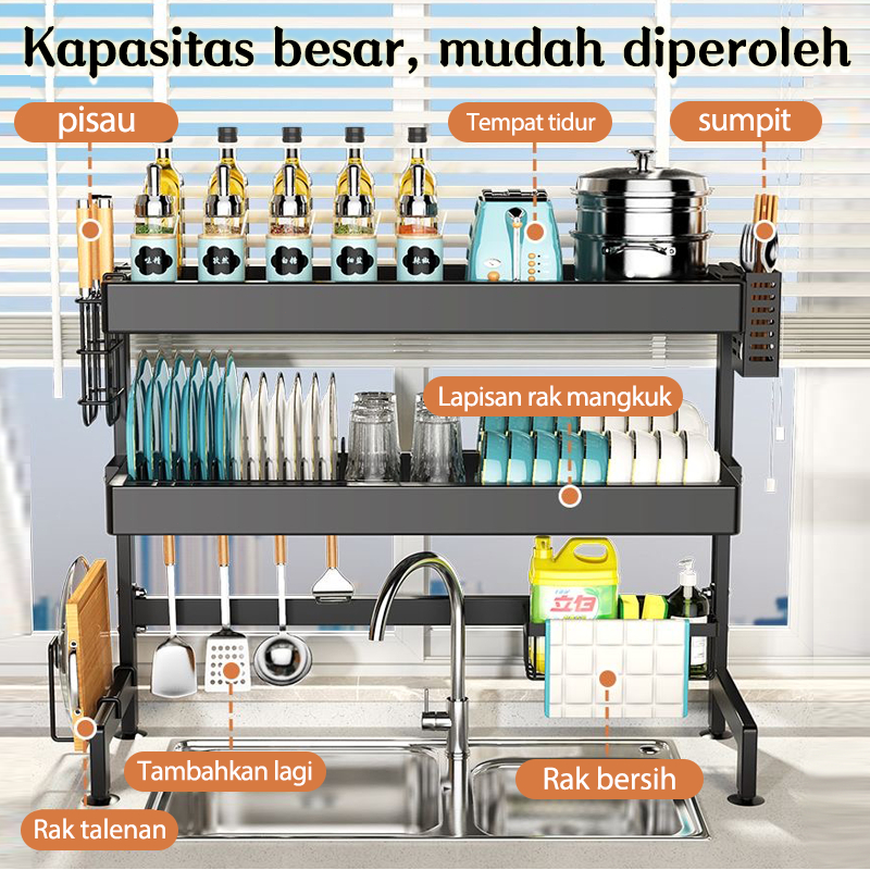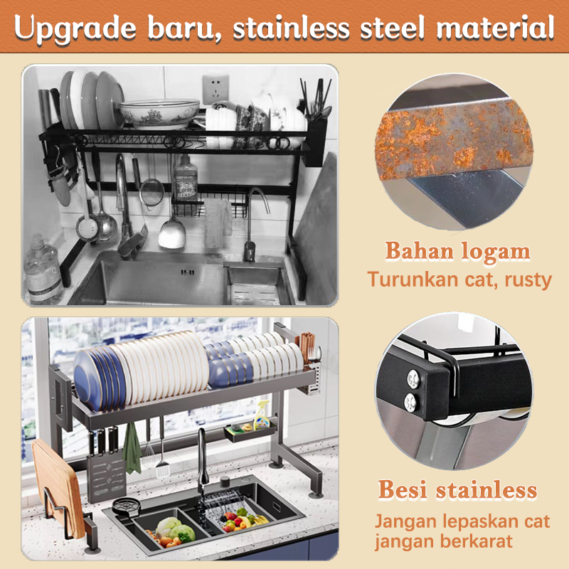 Rak Piring Wastafel Stainless Steel Rak Cuci Piring Dapur Rak Penyimpanan Piring