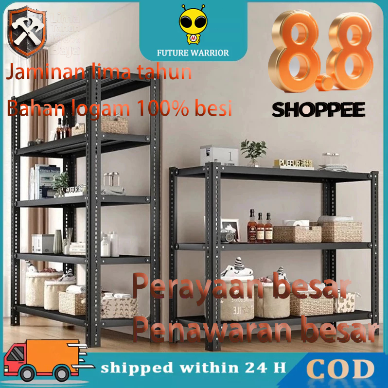 【100 PERSEN besi】Rak besi siku 5 susun Rak barang Rak gudang Rak susun Serbaguna Rak dapur Rak Aquarium 40x120x180cm