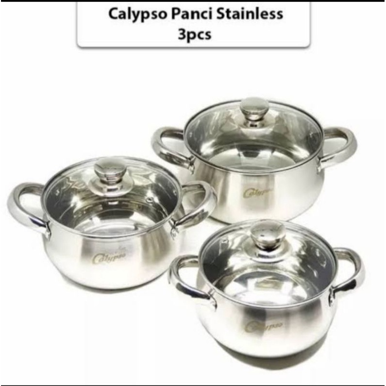 panci soup calypso set berkualitas isi 3pcs + tutup kaca tebal