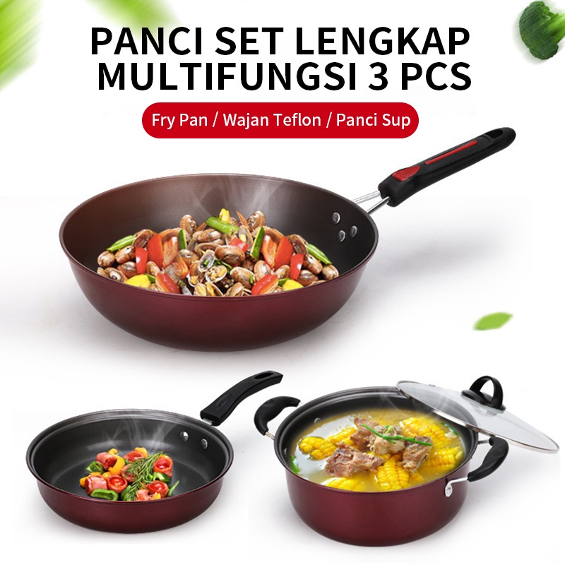 De Essential Cookware Panci Set 3 pcs 1042 - Arria Fry Pan Wajan Penggorengan Set