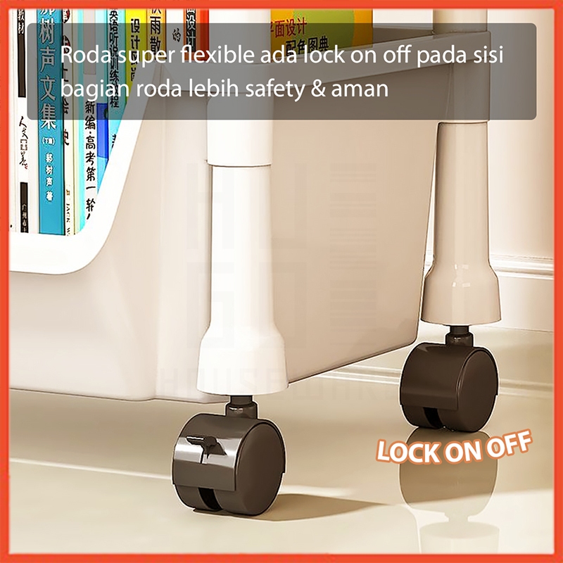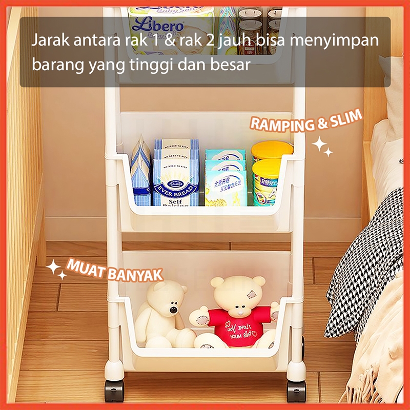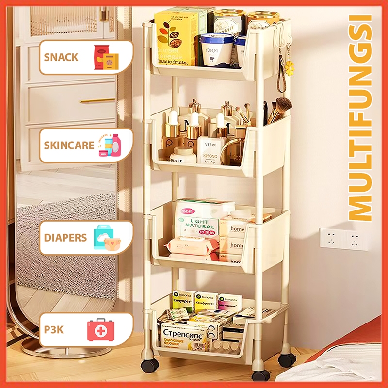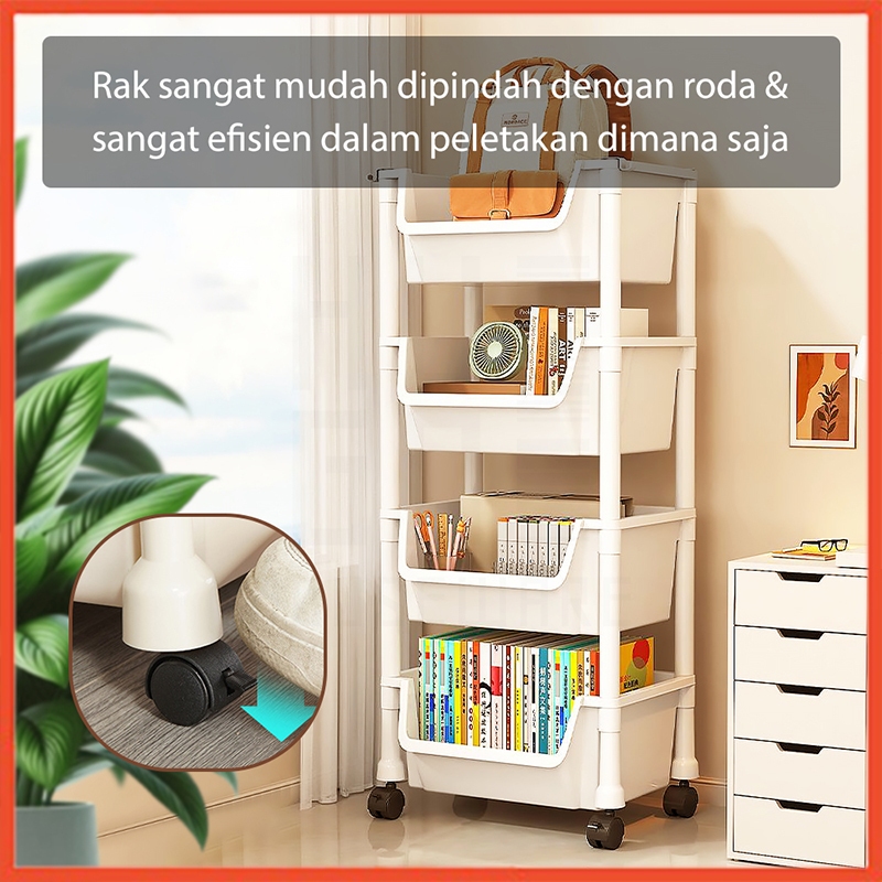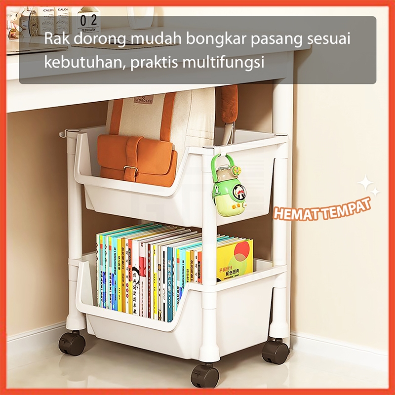 Hoptech - Rak Dorong Serbaguna Susun | Troli Dapur & Toilet Plastik dengan Roda Praktis
