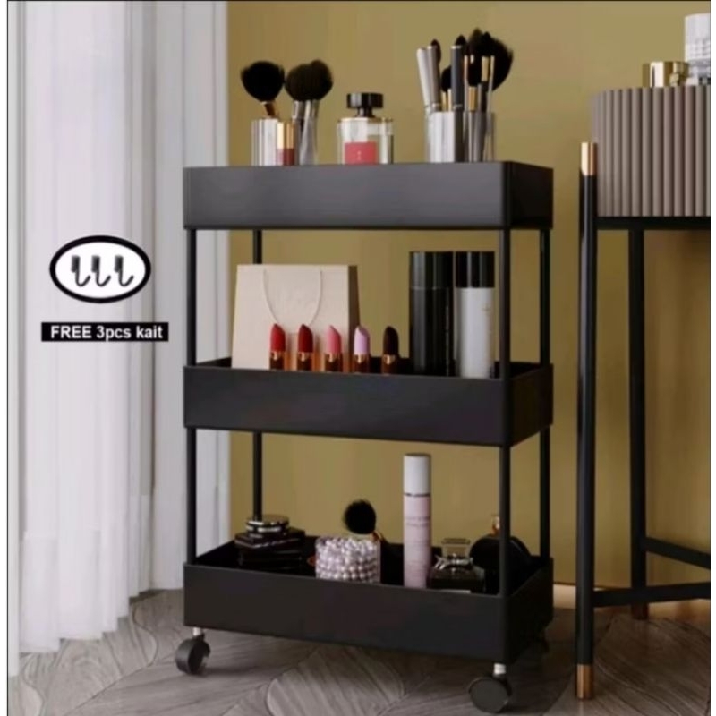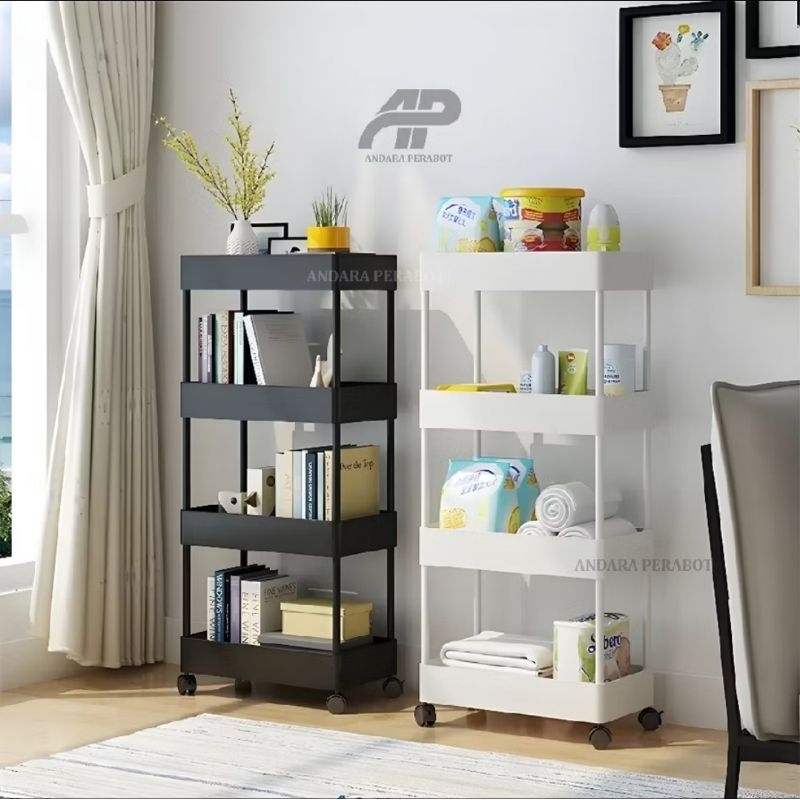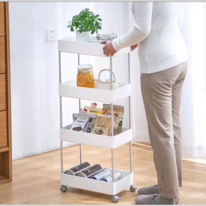 Rak Troli susun 4 + Roda Rak penyimpanan serbaguna dengan roda Rak apartemen Rak salon Rak Kamar Mandi