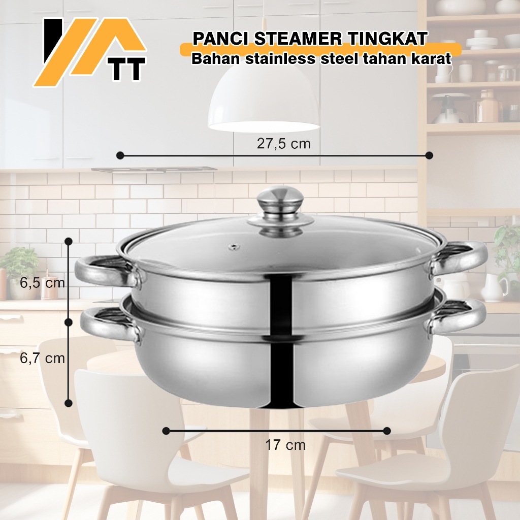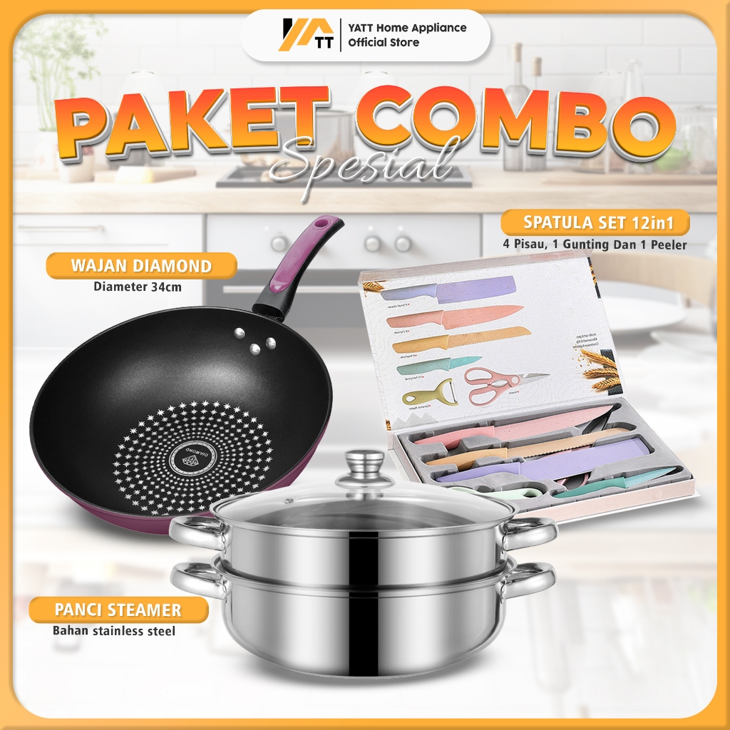YATT Paket Combo Murah Wajan Diamond 32CM + Panci Kukus Stainless 3in1 + Pisau Set Dapur 6in1