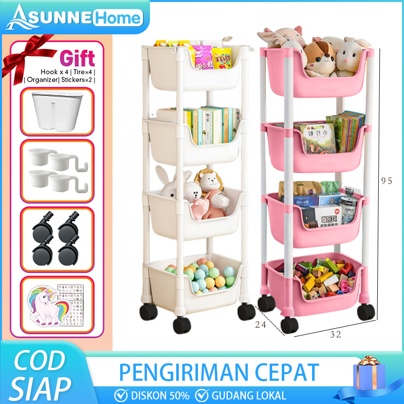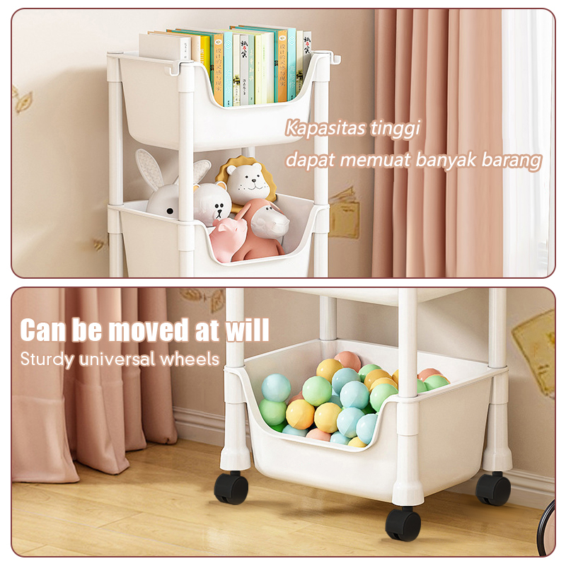 【UPGRADE】Rak Susun Serbaguna Penyimpanan Portable Rak Buku Terbuka Susun Serbaguna Rak Roda Storage