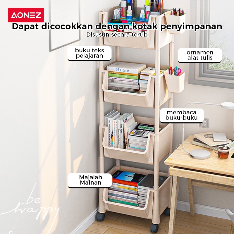 AONEZ Rak Troli Multi-lapis Keranjang Sayuran Dapur Rak Buku Ruang Tamu Rak Penyimpanan Makanan Ringan Rak Yang Dapat Dilepas