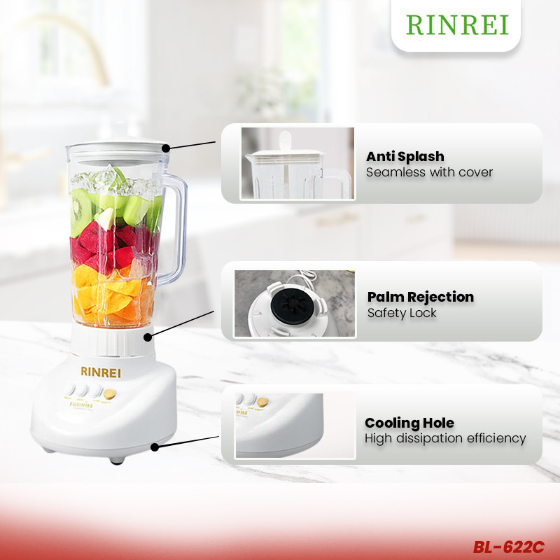 Blender Rinrei BR622C 1 LITER pembuat jus 3In1 wadah plastik warna Putih Garansi 1 Tahun