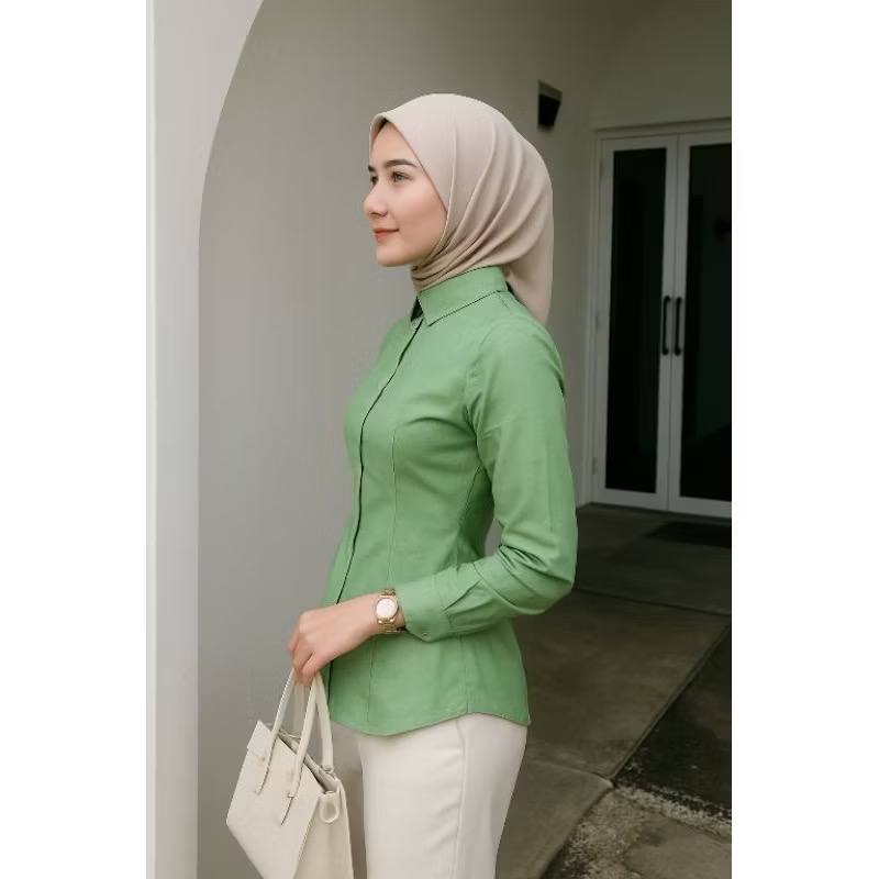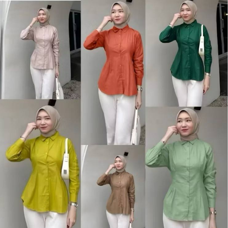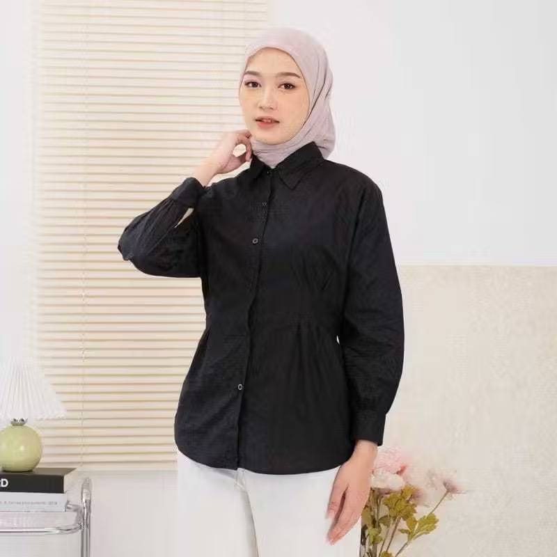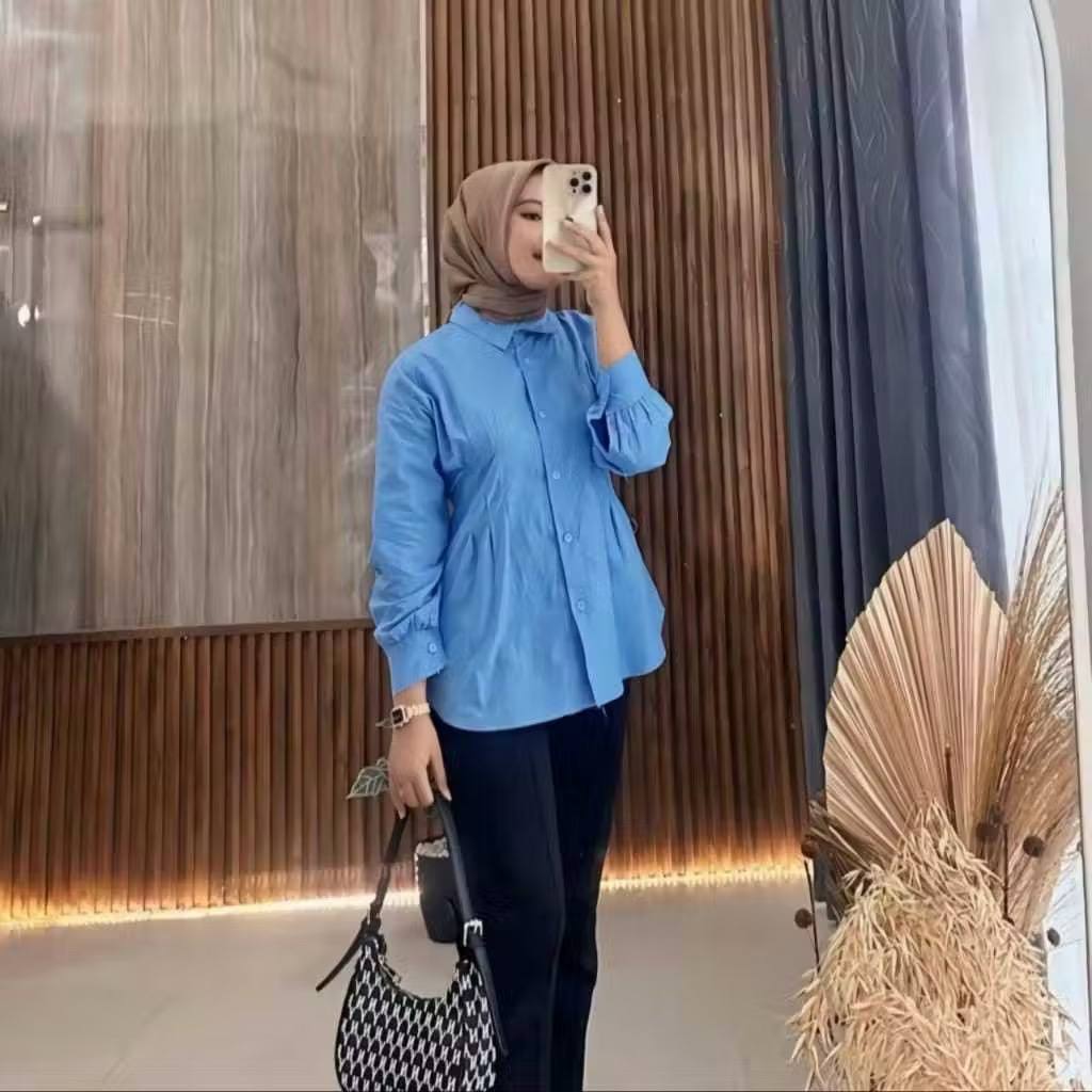 LUNA T0P LONG SLEEVE BLOUSE WANITA KEKINIAN LD 105CM DAN 115CM MATT COTTO ATASAN KEMEJA ABU WANITA BASIC DAILY OFFICE SHIRT LENGAN PANJANG STANDAR DAN JUMBO