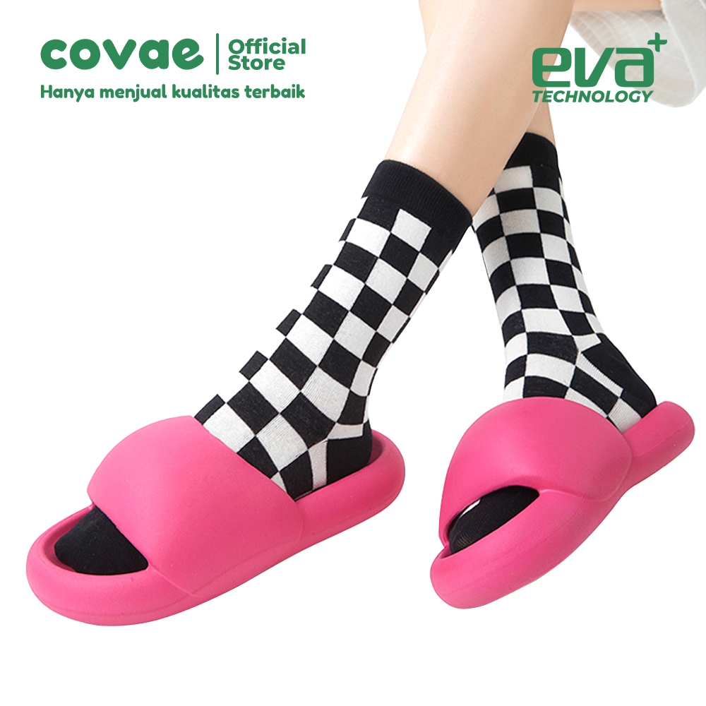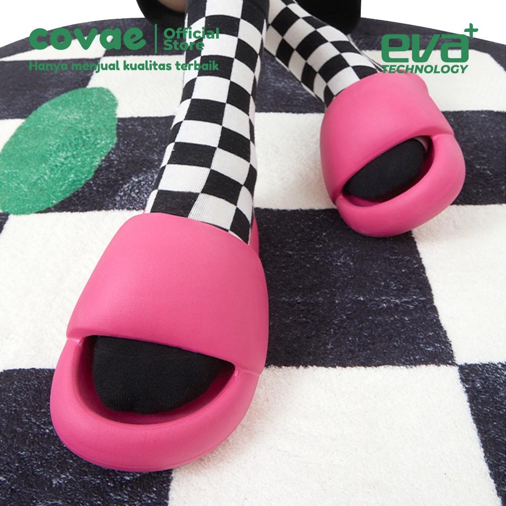 COVAE Sandal Wanita Kekinian CHUNKY Sandal Slop Lucu Empuk Ringan Anti Slip - Fuschia