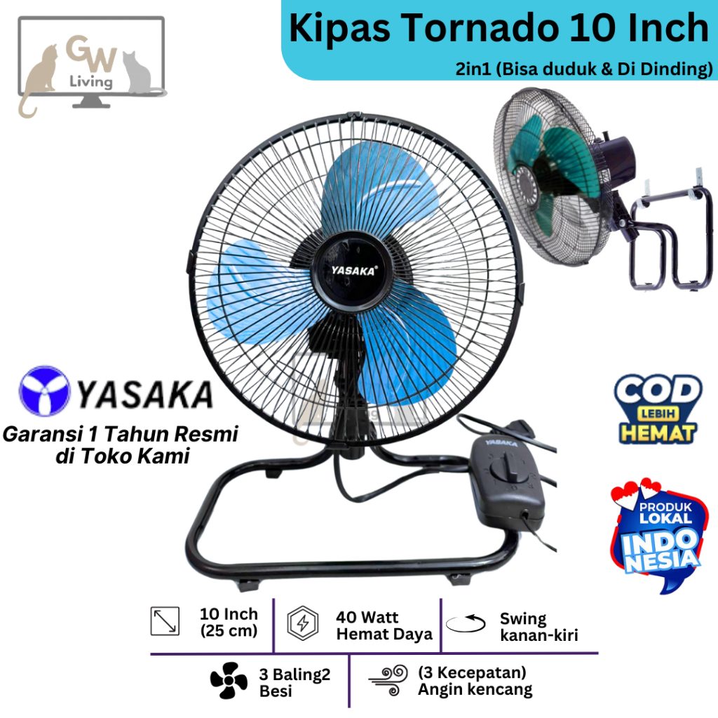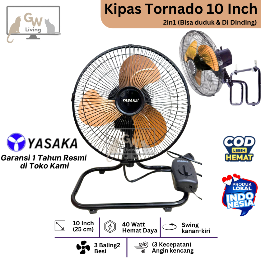 Kipas Angin Besi Tornado 10 Inch 2in1 Super Kencang Murah Hemat Daya