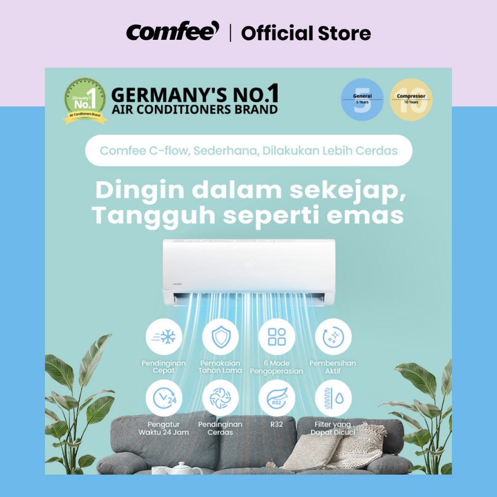 【NEW ARRIVAL】Comfee AC C-Flow Standard 0.5 PK (Unit Indoor & Outdoor) - CFS-05FST - AC Hemat Listrik, Anti Korosi, Active Clean, Free Shipping
