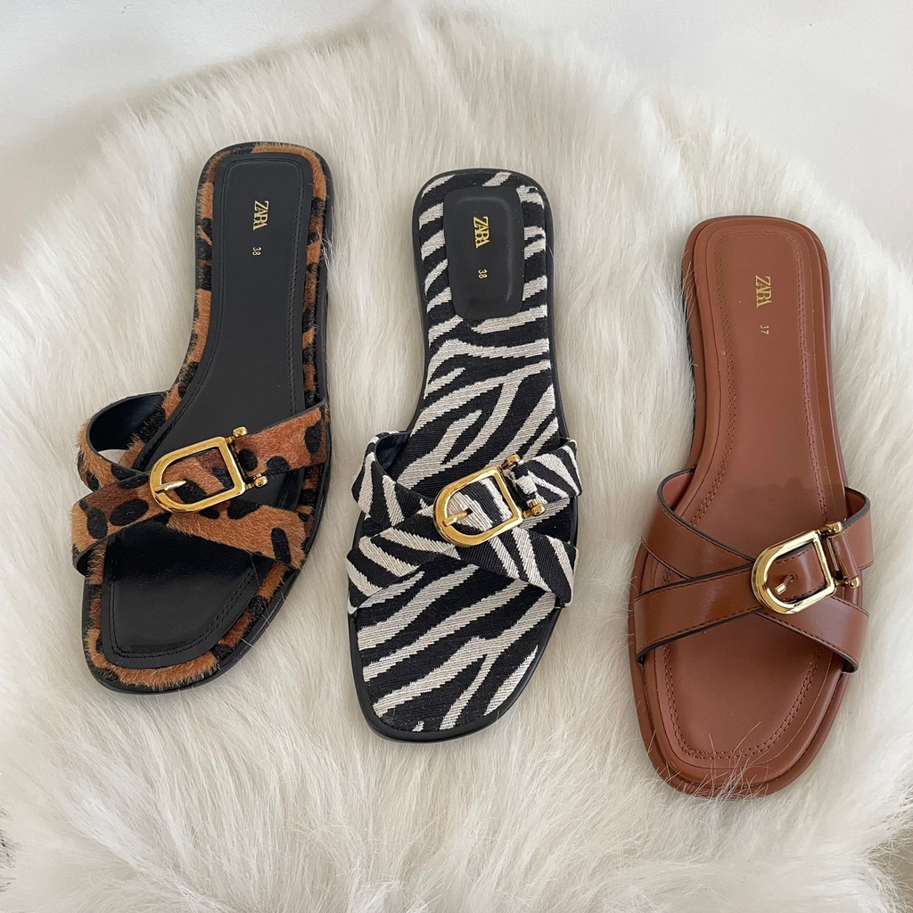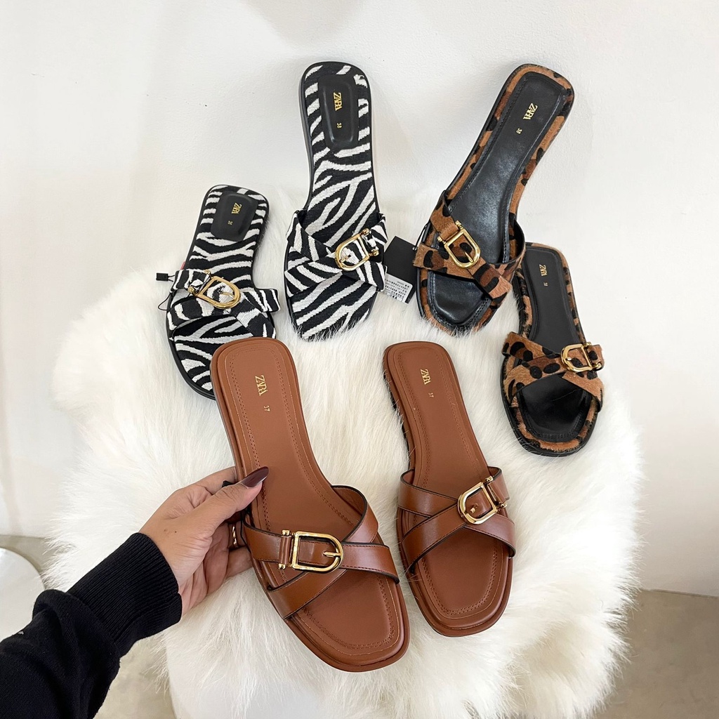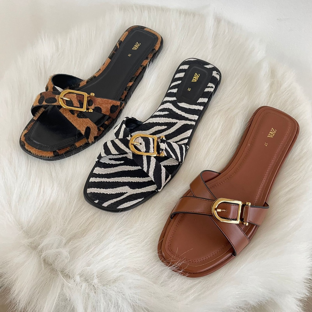 ZR 658 Sandal Kulit Sintetis Zebra/Brown/Leopard