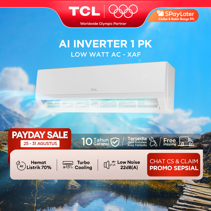 TCL AC Inverter 1PK - Tersedia Pemasangan - AI Tech Hemat Listrik 70 PERSEN - Anti Bising - Cepat Dingin - Turbo Cooling - Low Watt - Mini Full Set Baru - 1/2 0.5 PK (Model: TAC-09CSD/XAFI)