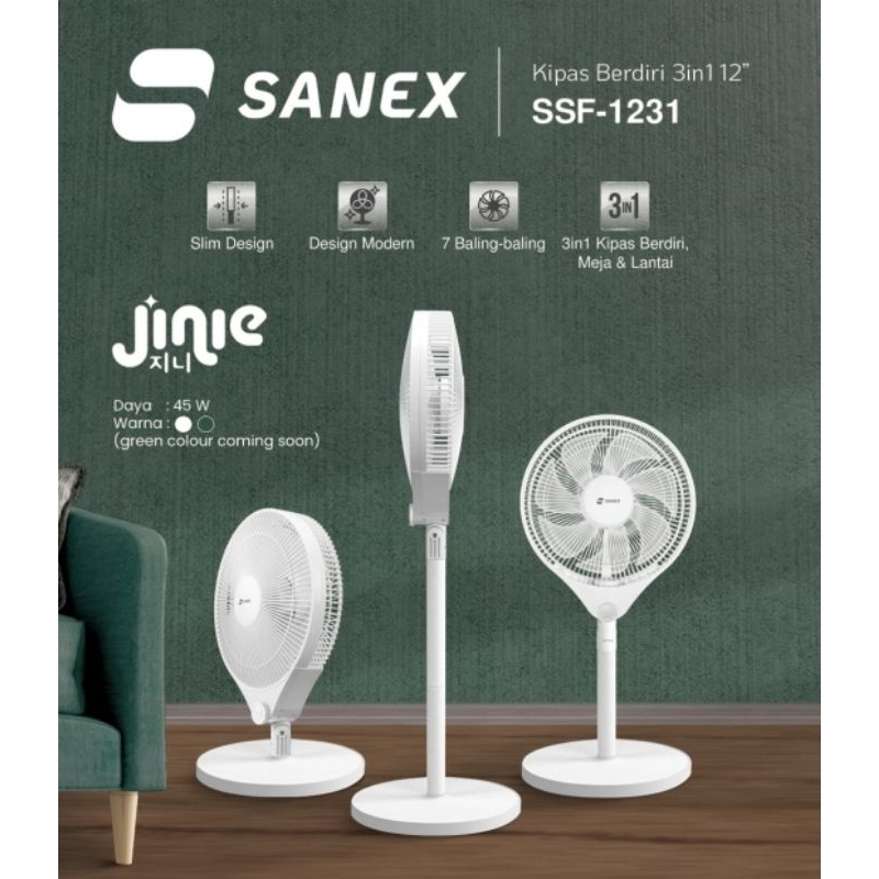 SANEX Stand & Desk Fan Kipas Angin Meja & Berdiri 2 IN 1 12 Inch 7 Baling SSF-1221 N Design Modern & Minimalis Baling Bening Transparan + Remote