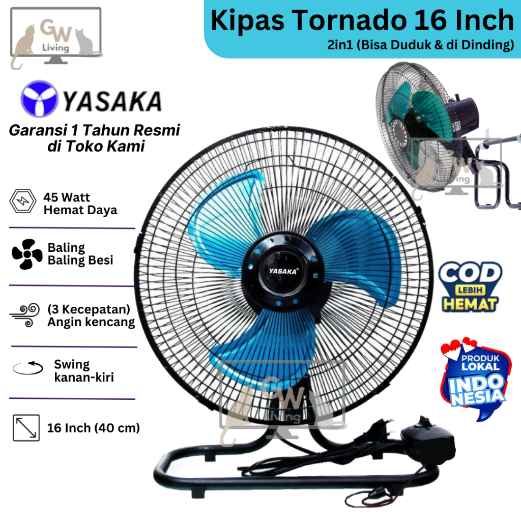Kipas Angin Duduk Dinding Besi Tornado 16 Inch 2in1 Super Kencang Murah Hemat Daya
