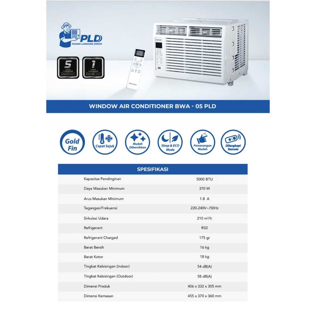 BESTLIFE AC Window 0.5 PK BWA 05PLD / BWA05PLD / BWA-05PLD 1/2 PK - Gold Fin - Remote - Cepat Sejuk